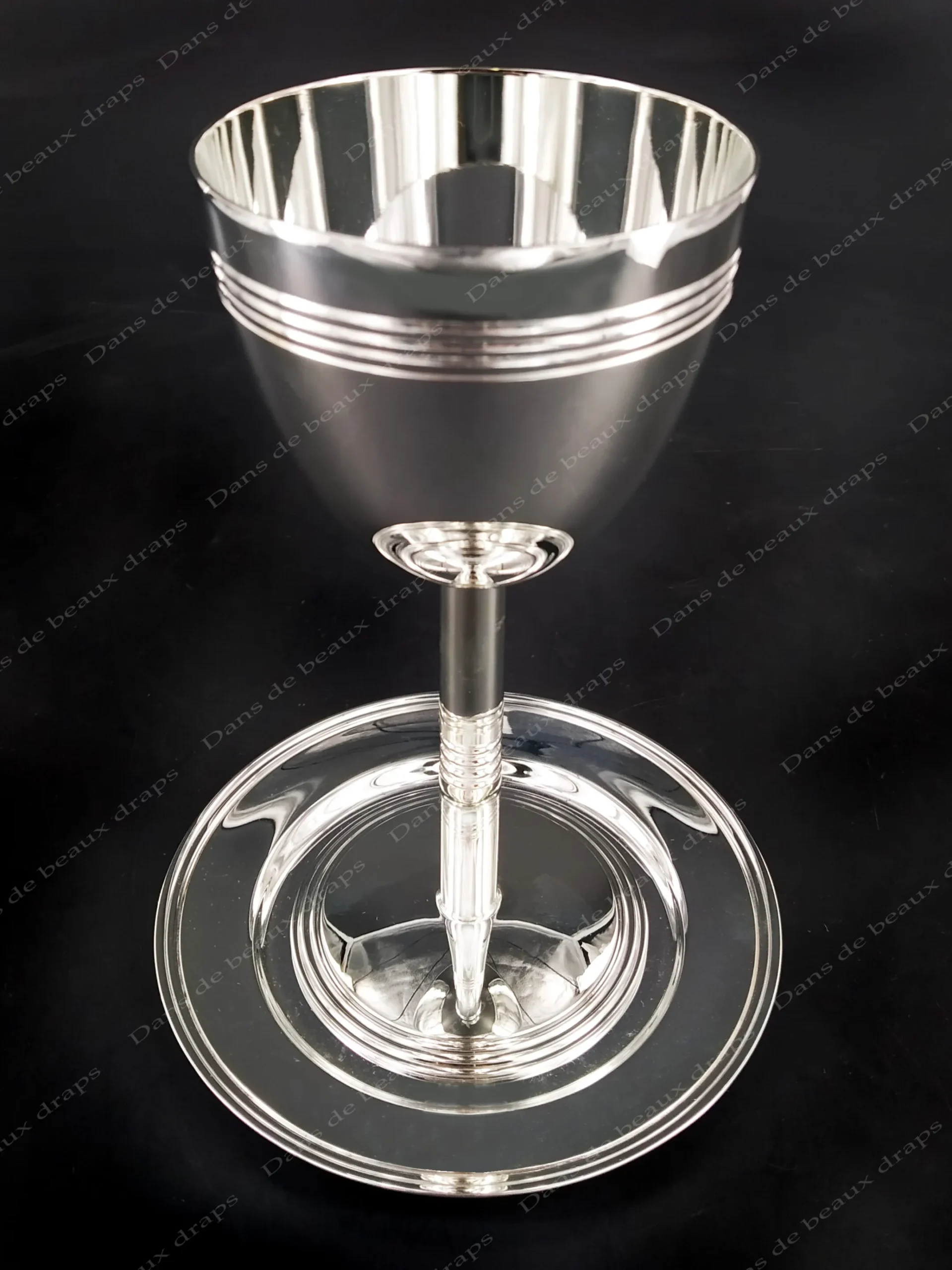 Verre à kiddouch et sa soucoupe en métal argenté,orfèvre Christofle,Paris.