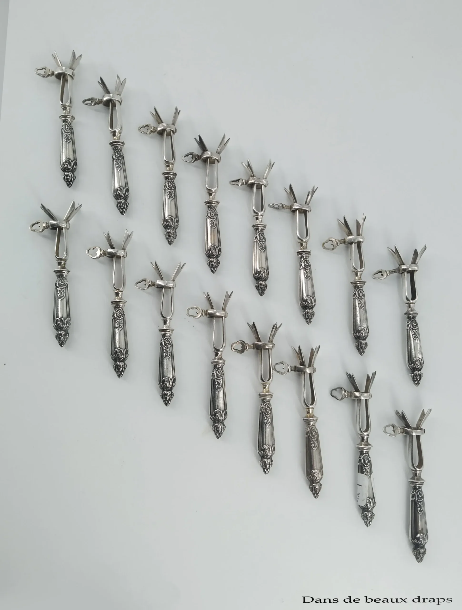 Magnifique suite de 8 manches à côtelettes en argent