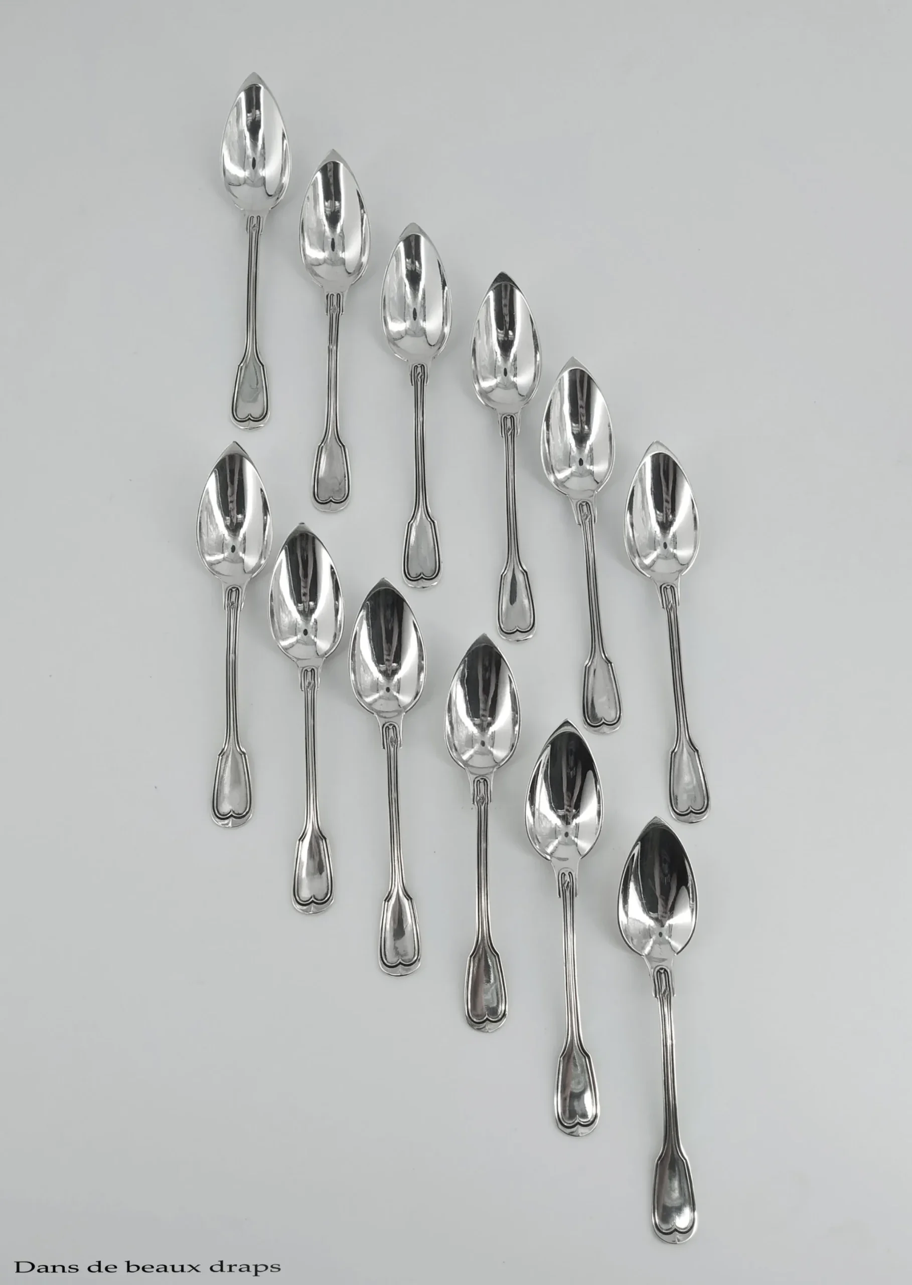 Suite de 12 cuillères à café en argent monogrammées