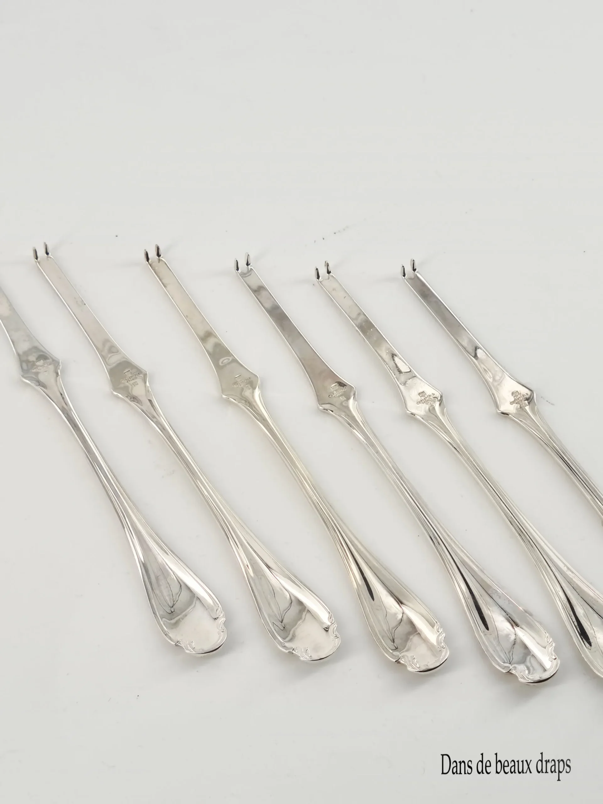 Jolie suite de 6 curettes à homard en métal argenté, orfèvre Christofle, modèle Pompadour