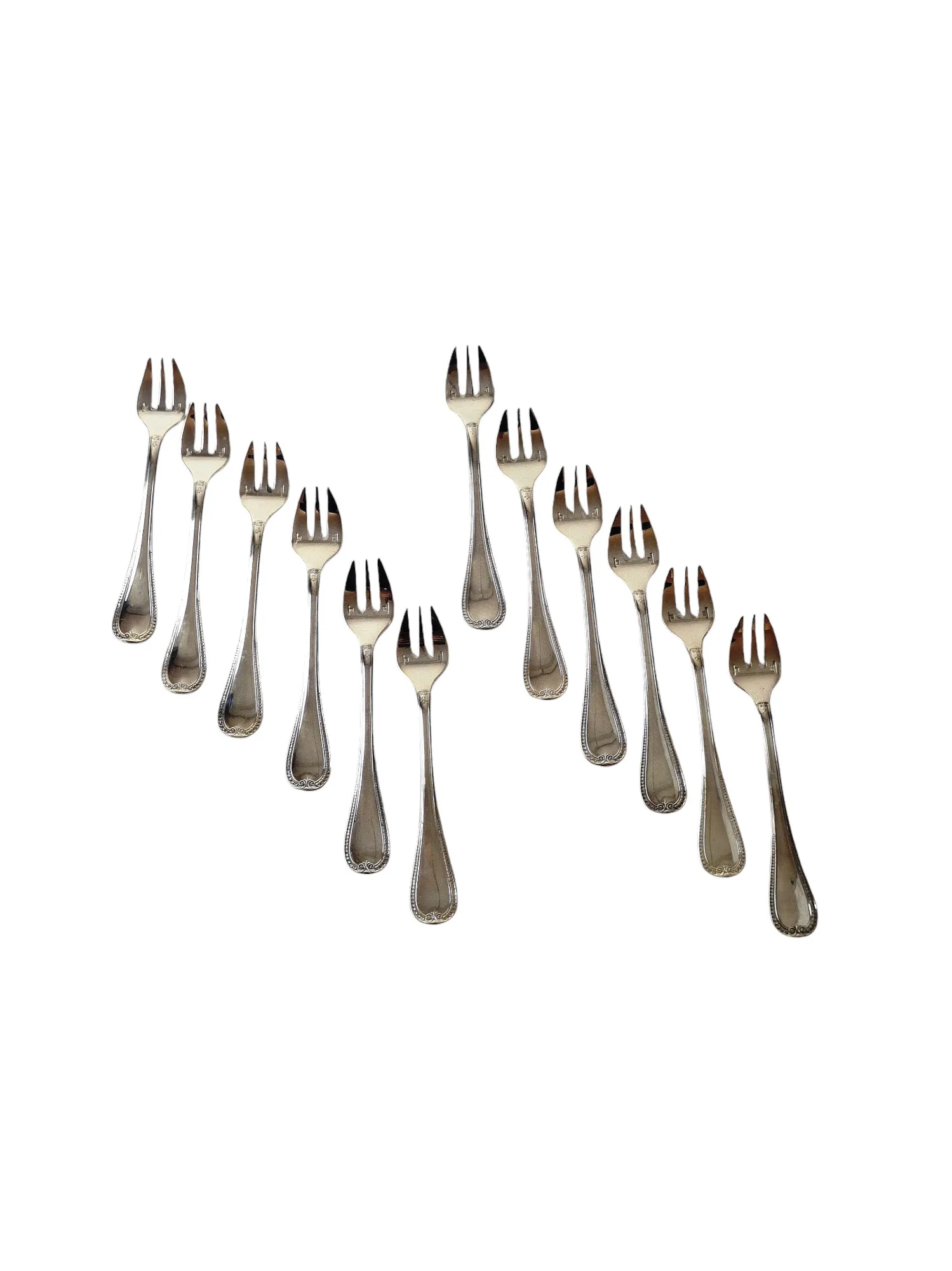 Suite de 12 fourchettes à huitre en métal argenté, orfèvre Christofle, modèle Malmaison