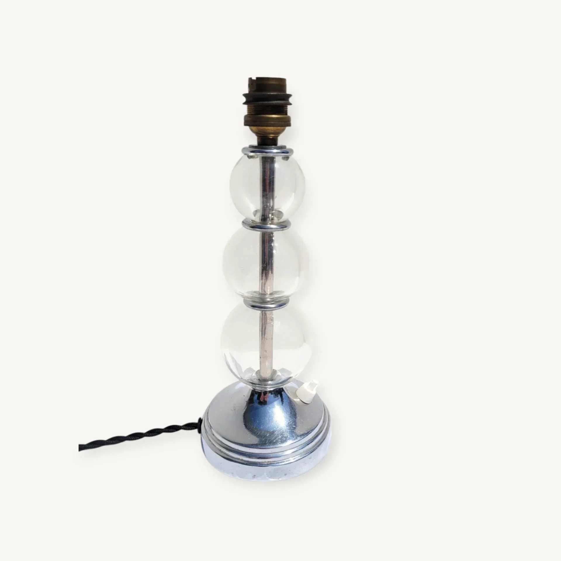Pied de lampe chrome et boules en verre dlg J. Adnet