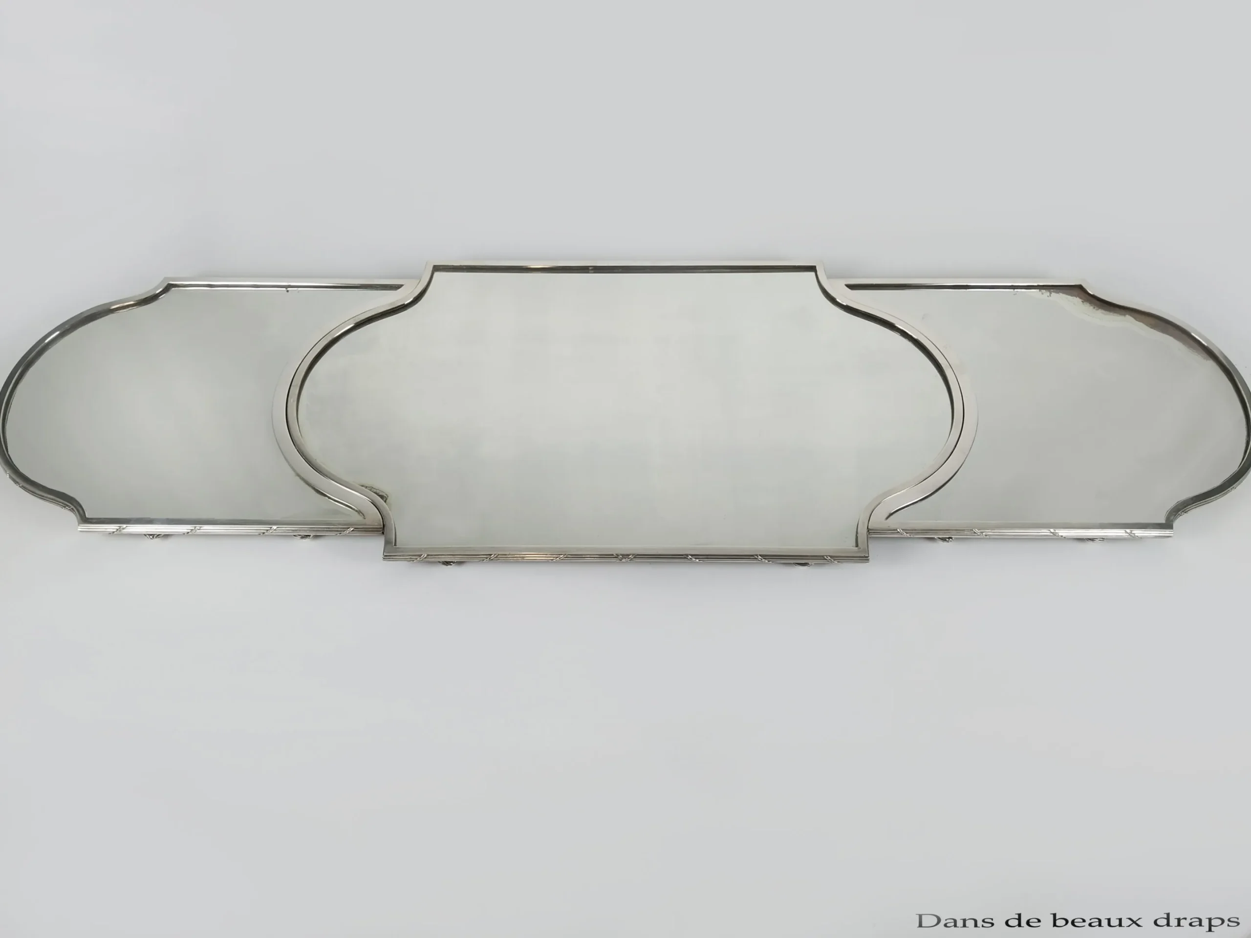 Rare et spectaculaire surtout de table en bronze argenté et fond de miroir, fin XIX ème.