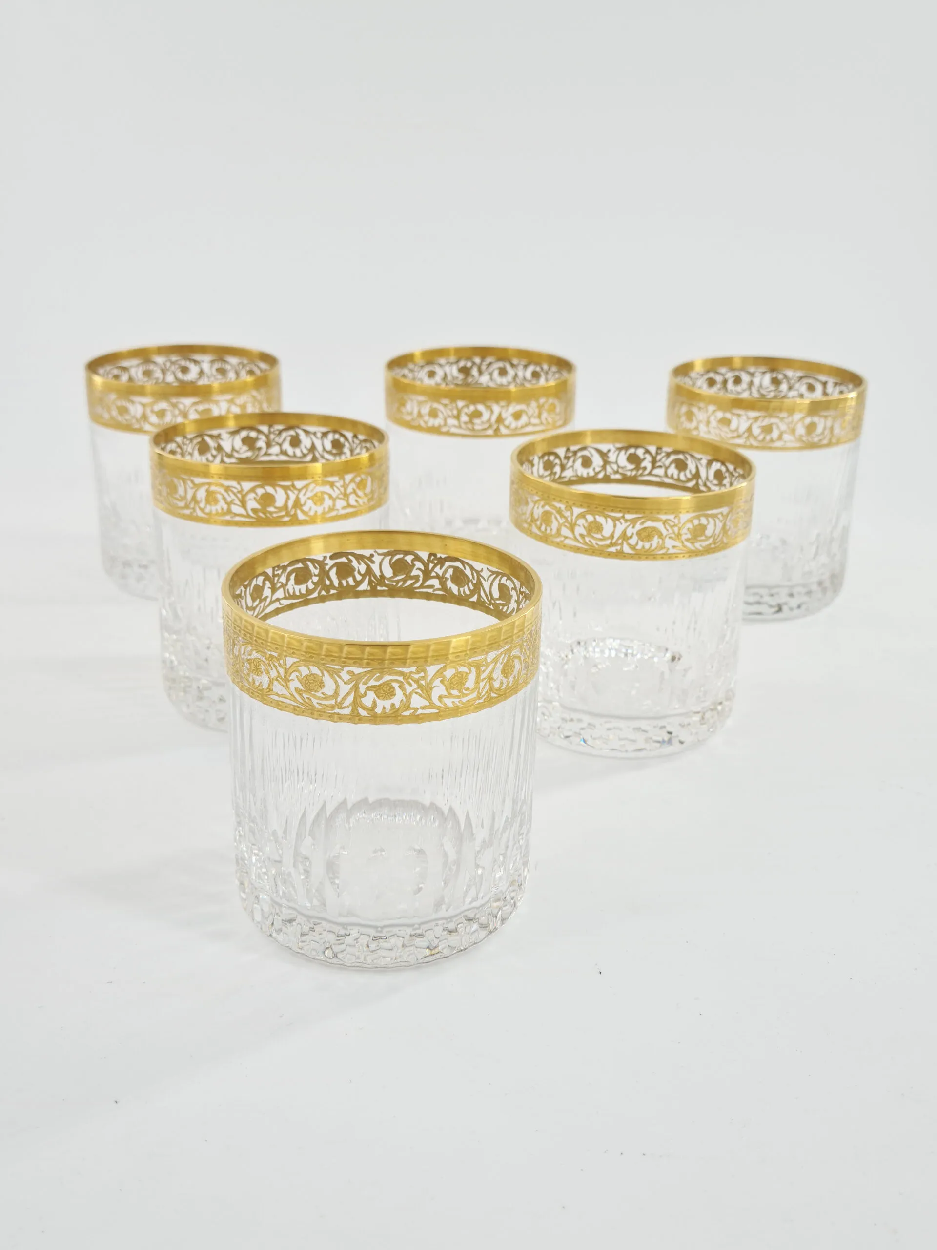 Rare suite de 6 gobelets cylindriques or moyen modèle Thistle Saint Louis.