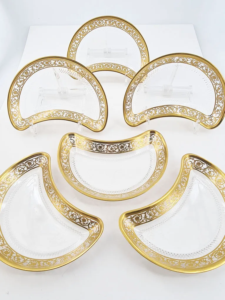 Rare suite de 6 assiettes à salade en cristal de Saint Louis, modèle Thistle