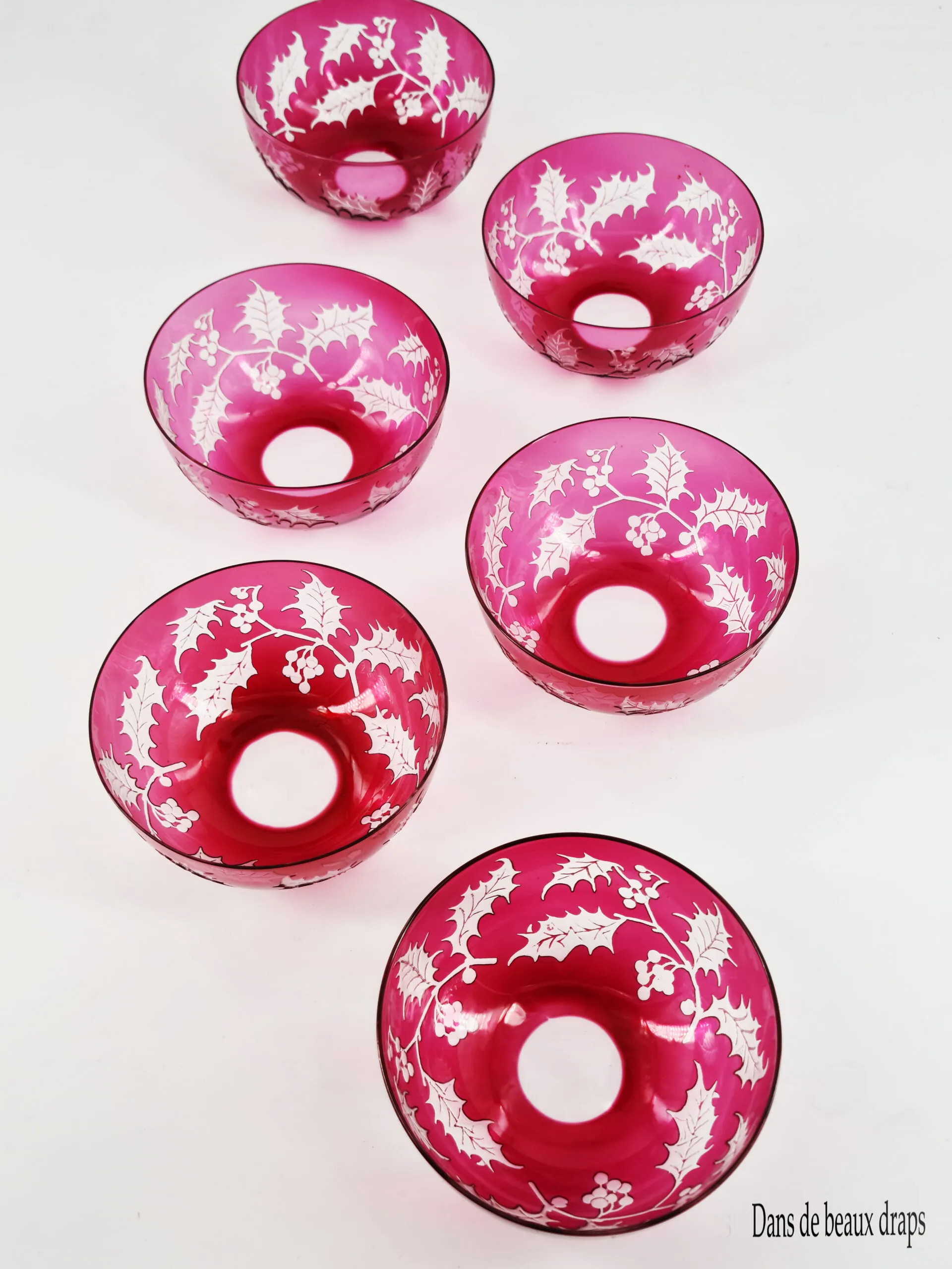 Rare suite de 6 coupelles en cristal à décor de houx.