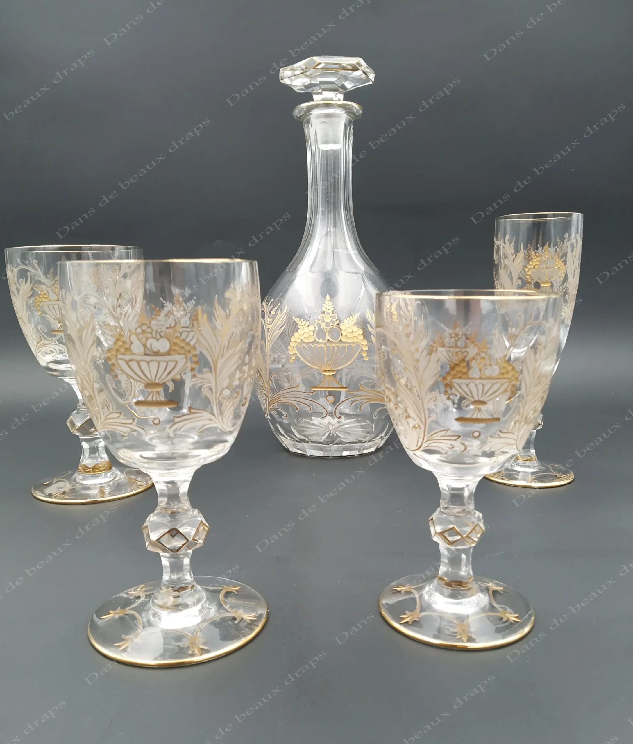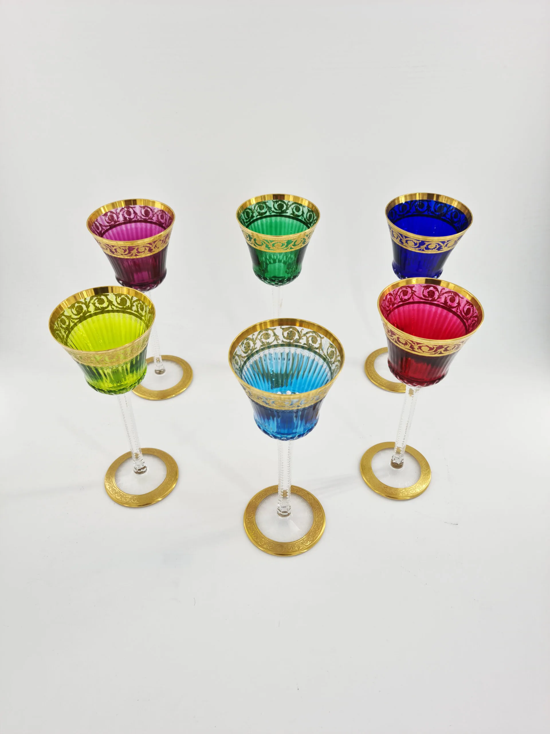 Suite de 6 verres à vin du Rhin en cristal de Saint Louis , modèle Thistle Or.