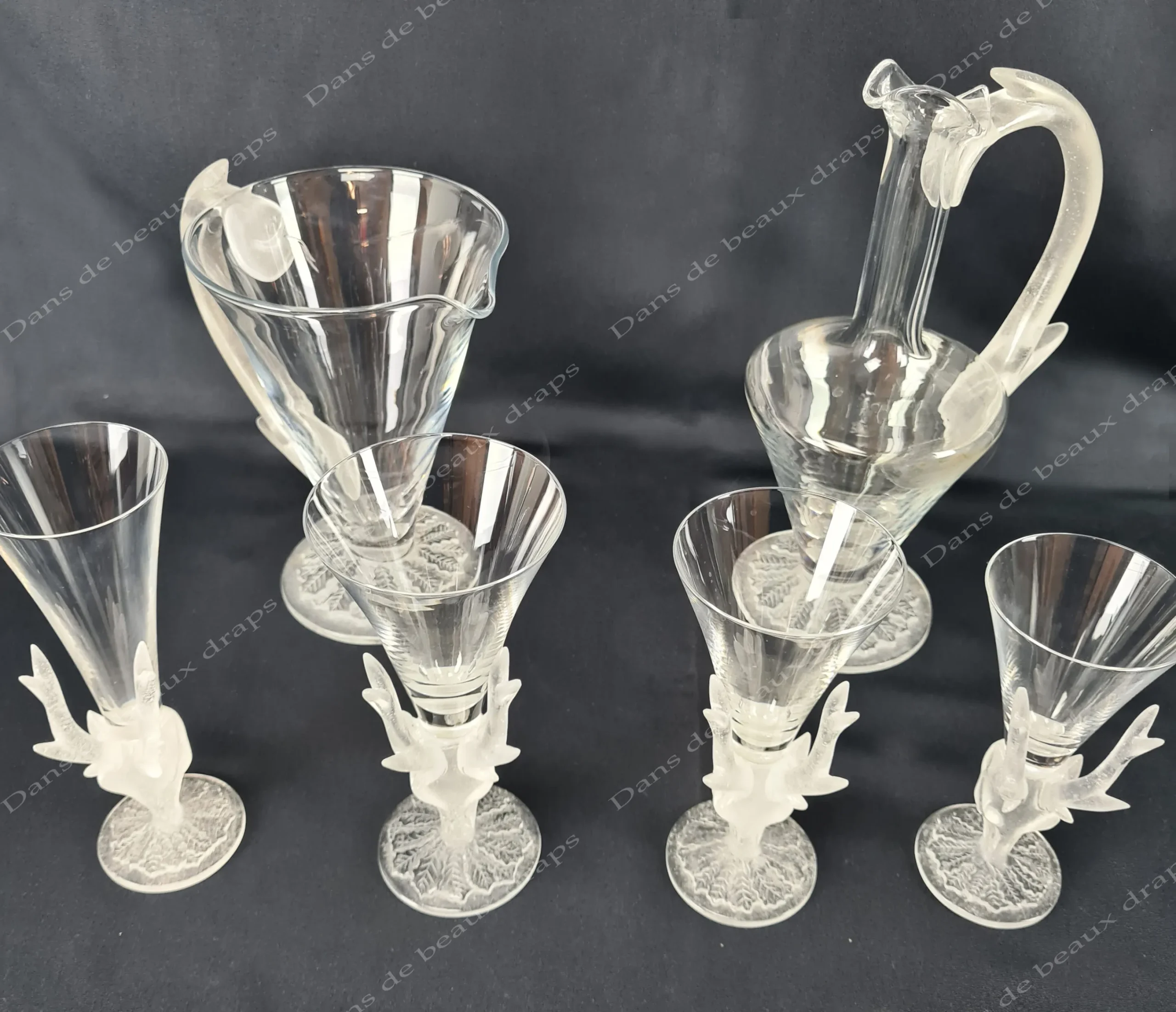 Très rare ensemble de verres en cristal de Daum, modèle Cerfs, design Jean Marais (1913/1998) 34 pièces.