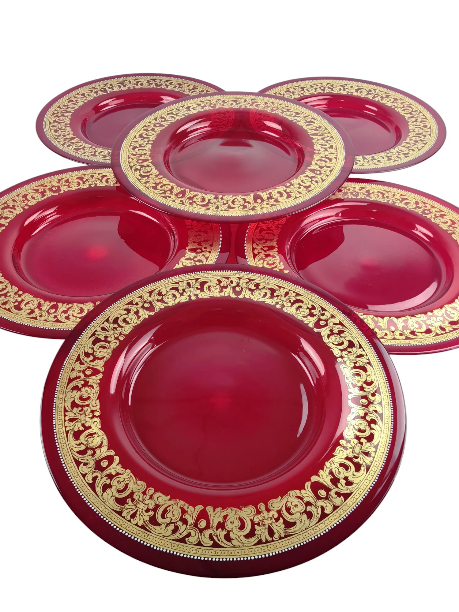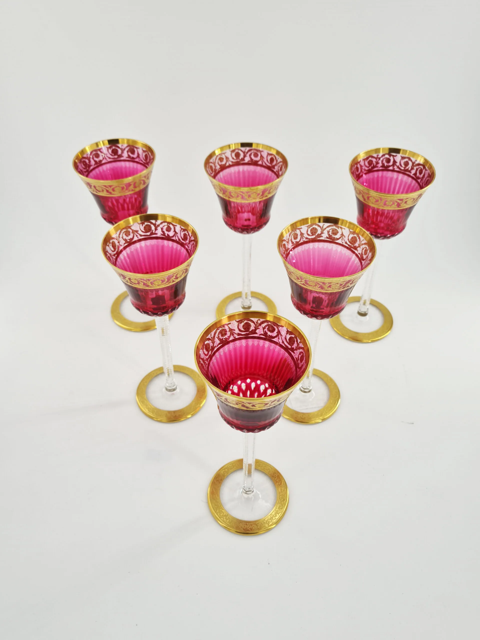 Suite de 6 verres à vin du Rhin de couleur rouge en cristal de Saint Louis , modèle Thistle Or.