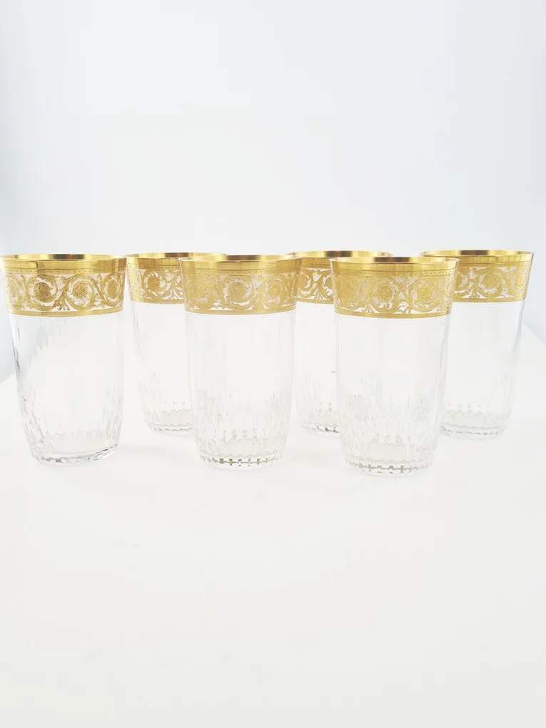 Suite de 6 chopes en cristal de Saint Louis, modèle Thistle Or