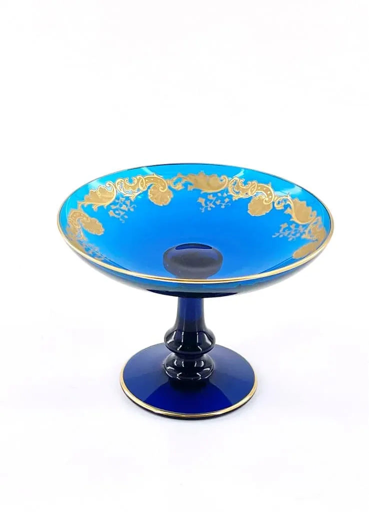 Superbe coupe à mignardises en cristal bleu de Saint Louis, modèle Nostalgie