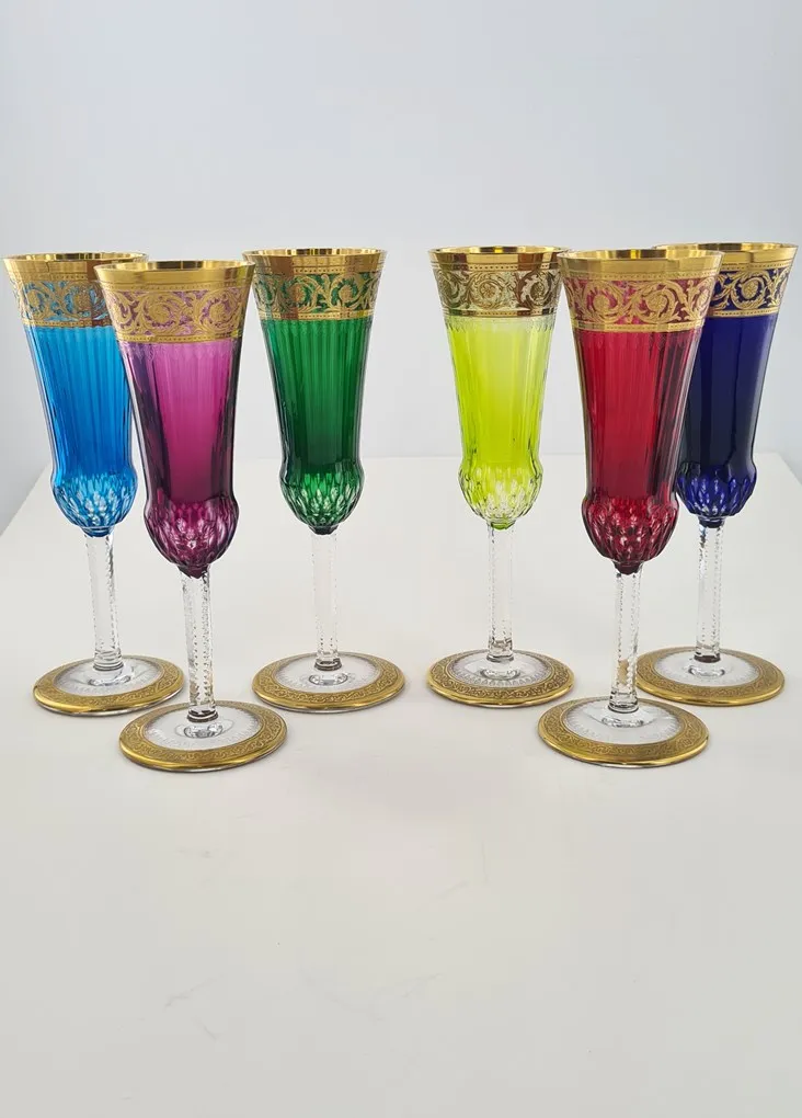Suite de 6 flûtes à champagne en cristal de Saint Louis , modèle Thistle Or.