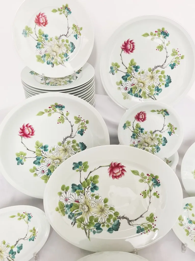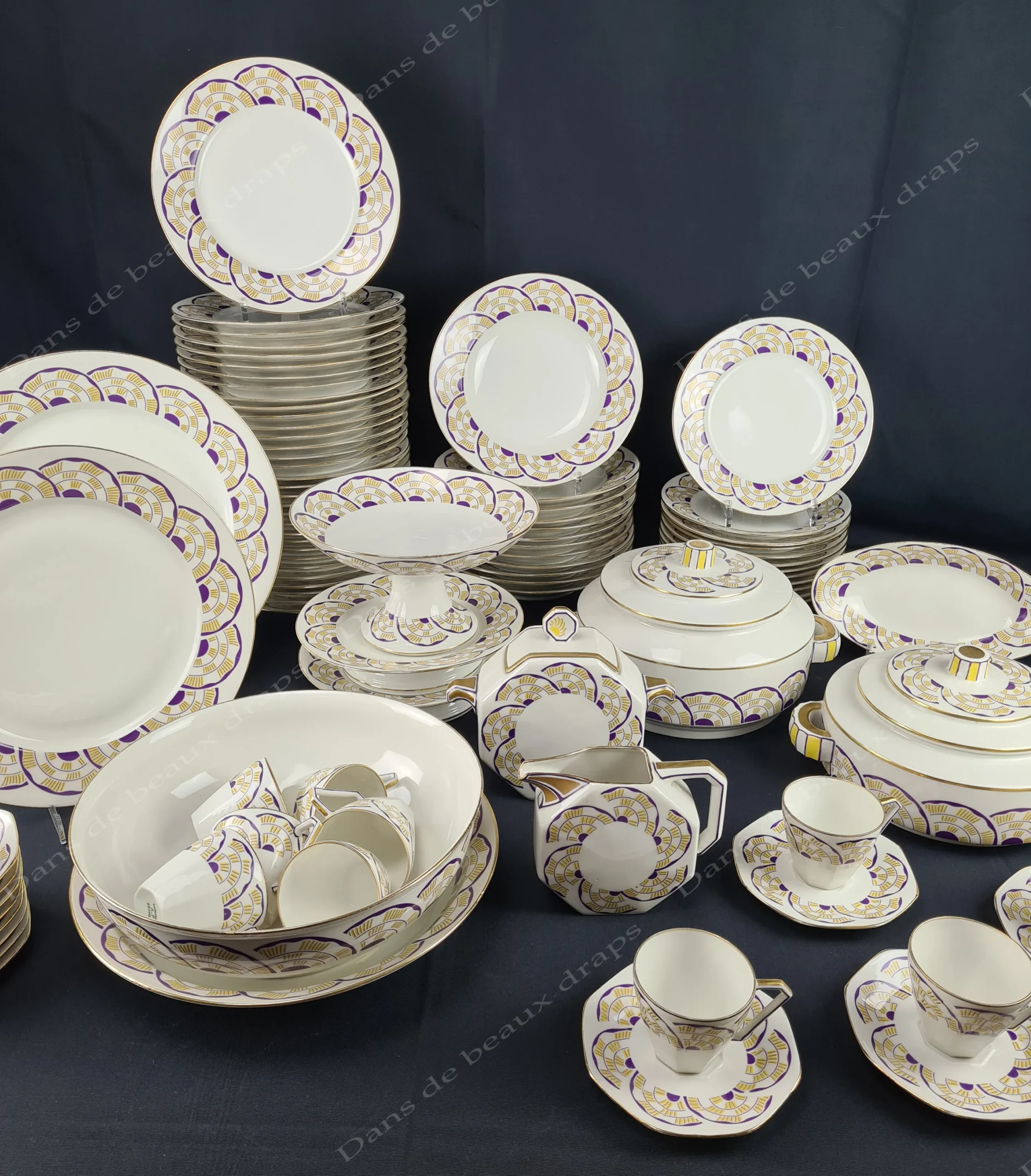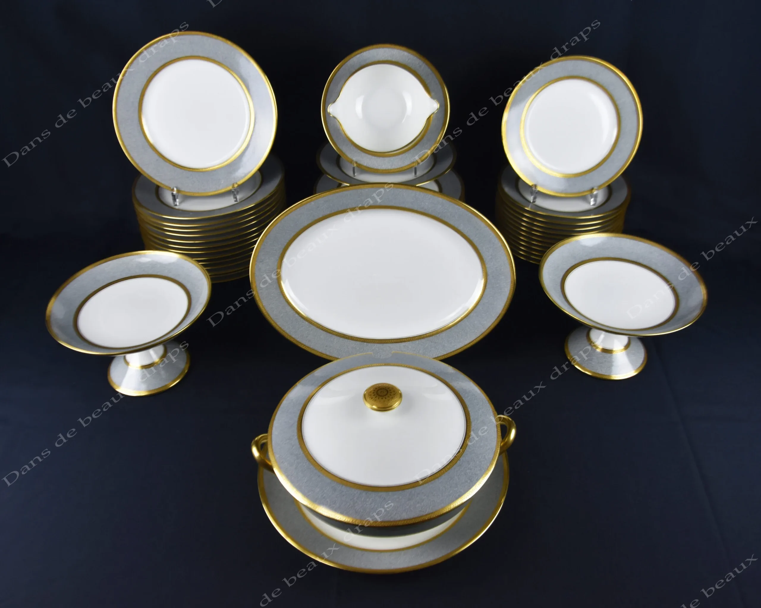 Magnifique service de table en porcelaine de Limoges, maison Bernardaud, modèle Singapour, 72 pièces