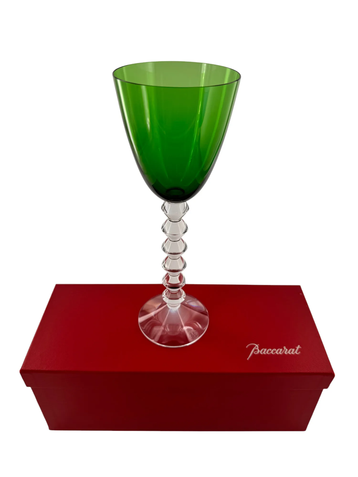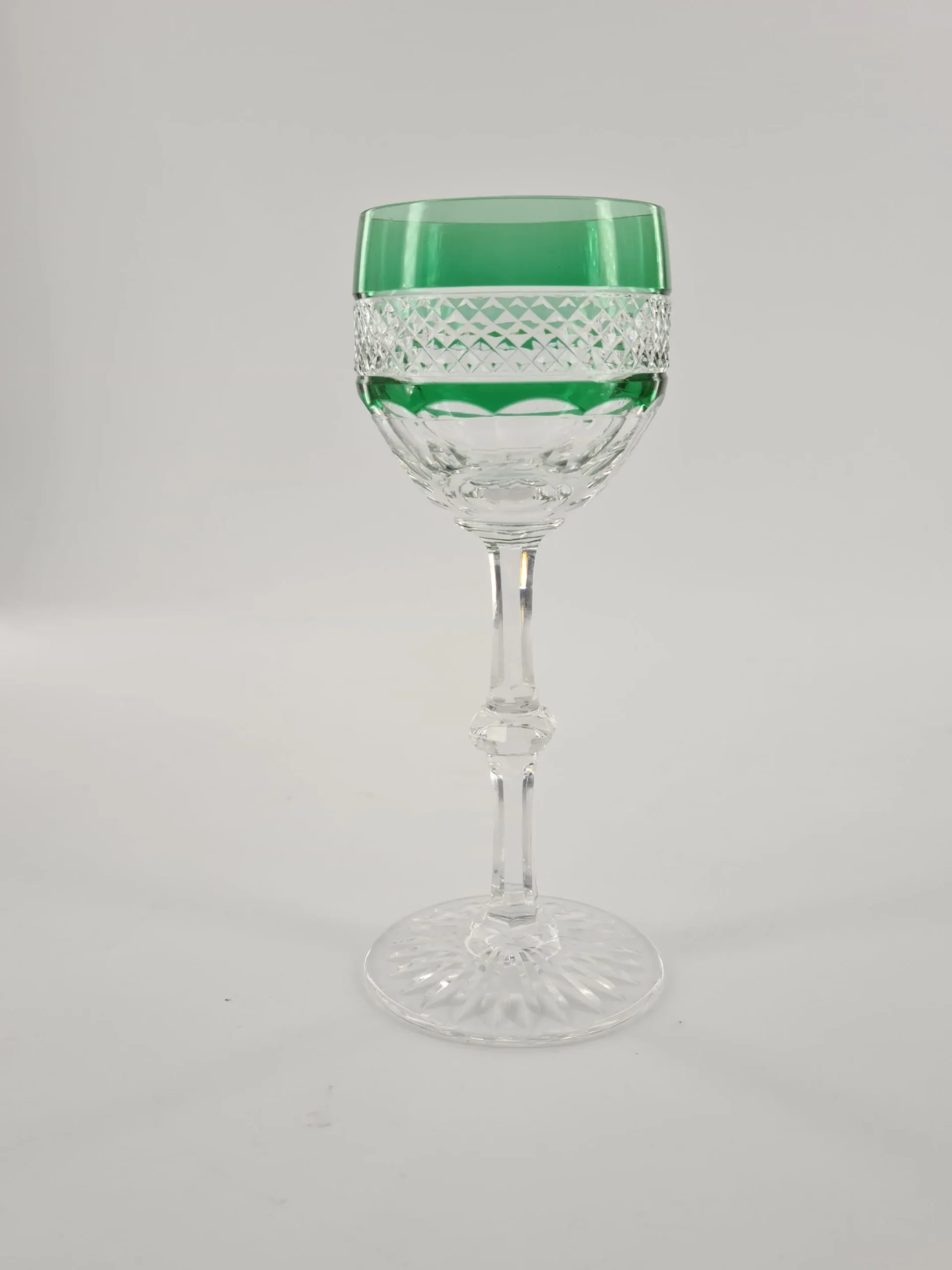 Verre à vin blanc ou roemer de couleur verte en cristal de Saint Louis, modèle Trianon.