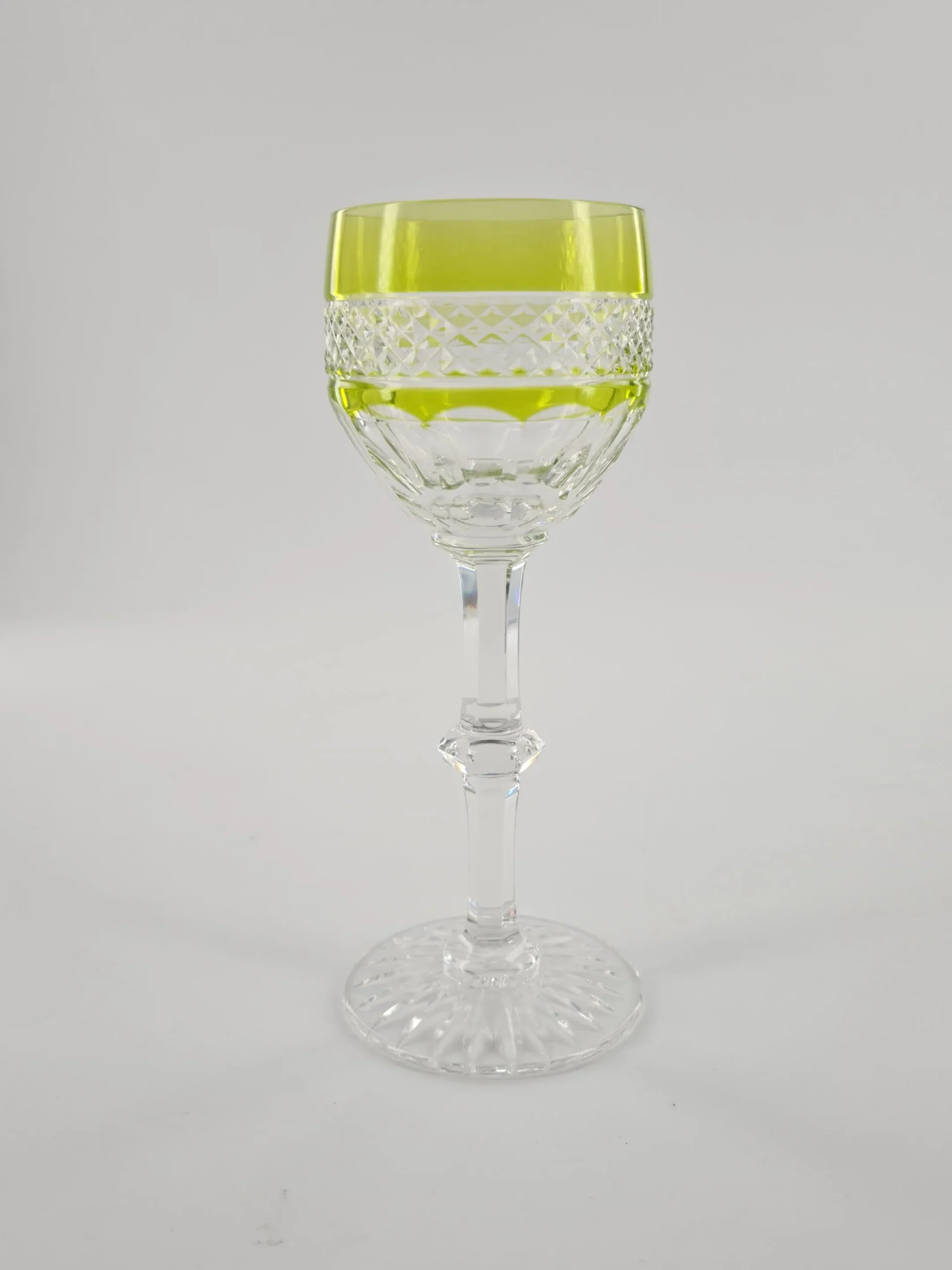 Verre à vin blanc ou roemer de couleur jaune en cristal de Saint Louis, modèle Trianon.