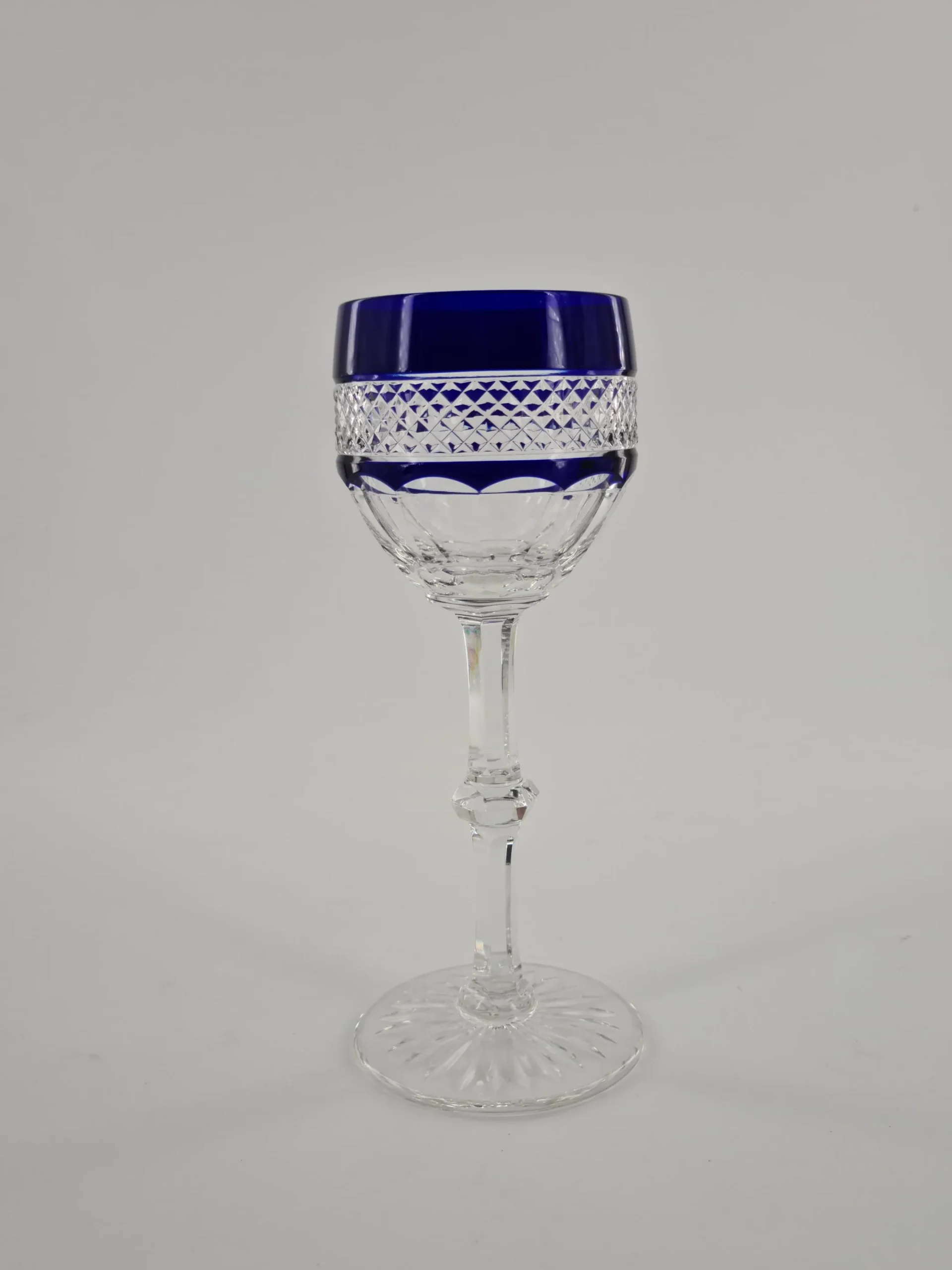 Verre à vin blanc ou roemer de couleur bleu cobalt en cristal de Saint Louis, modèle Trianon.