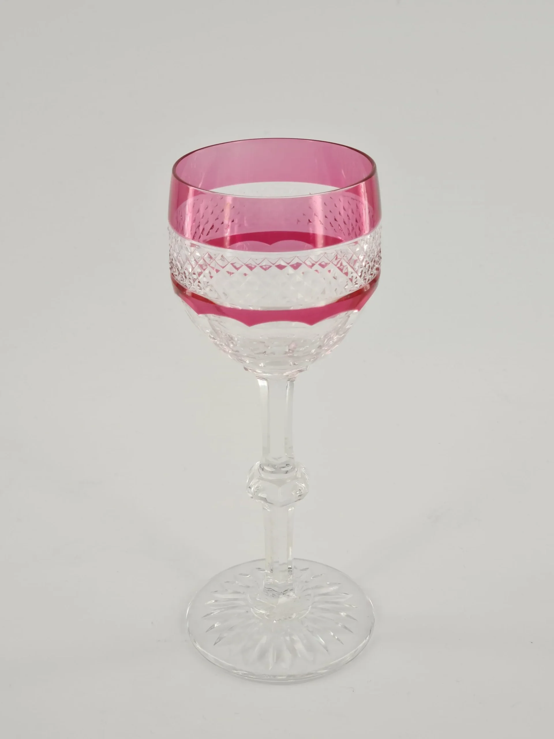 Verre à vin blanc ou roemer de couleur rose en cristal de Saint Louis, modèle Trianon.