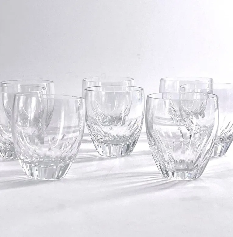 Amusante suite de 8 mini gobelets à liqueur en cristal de Baccarat modèle Massena.