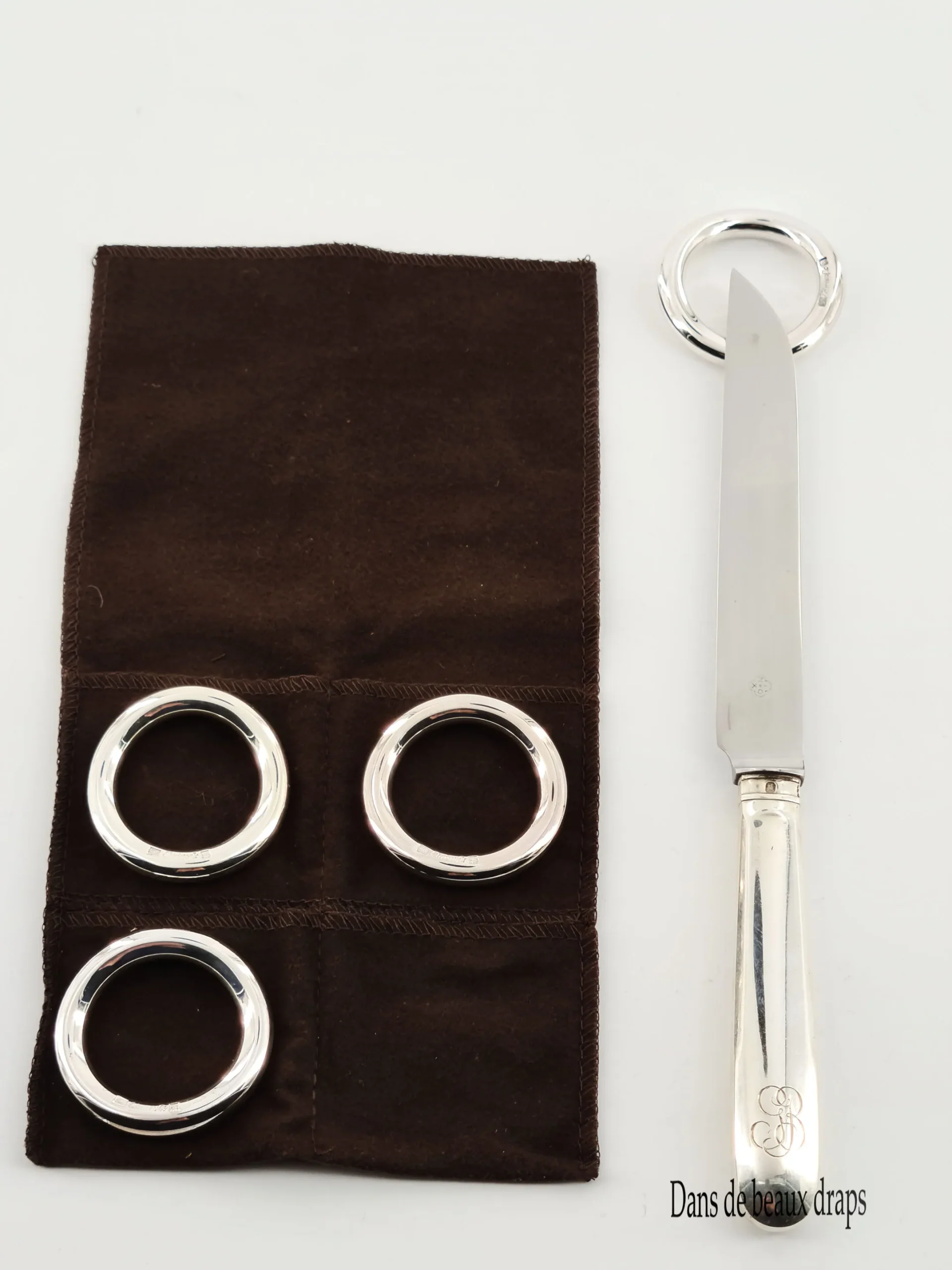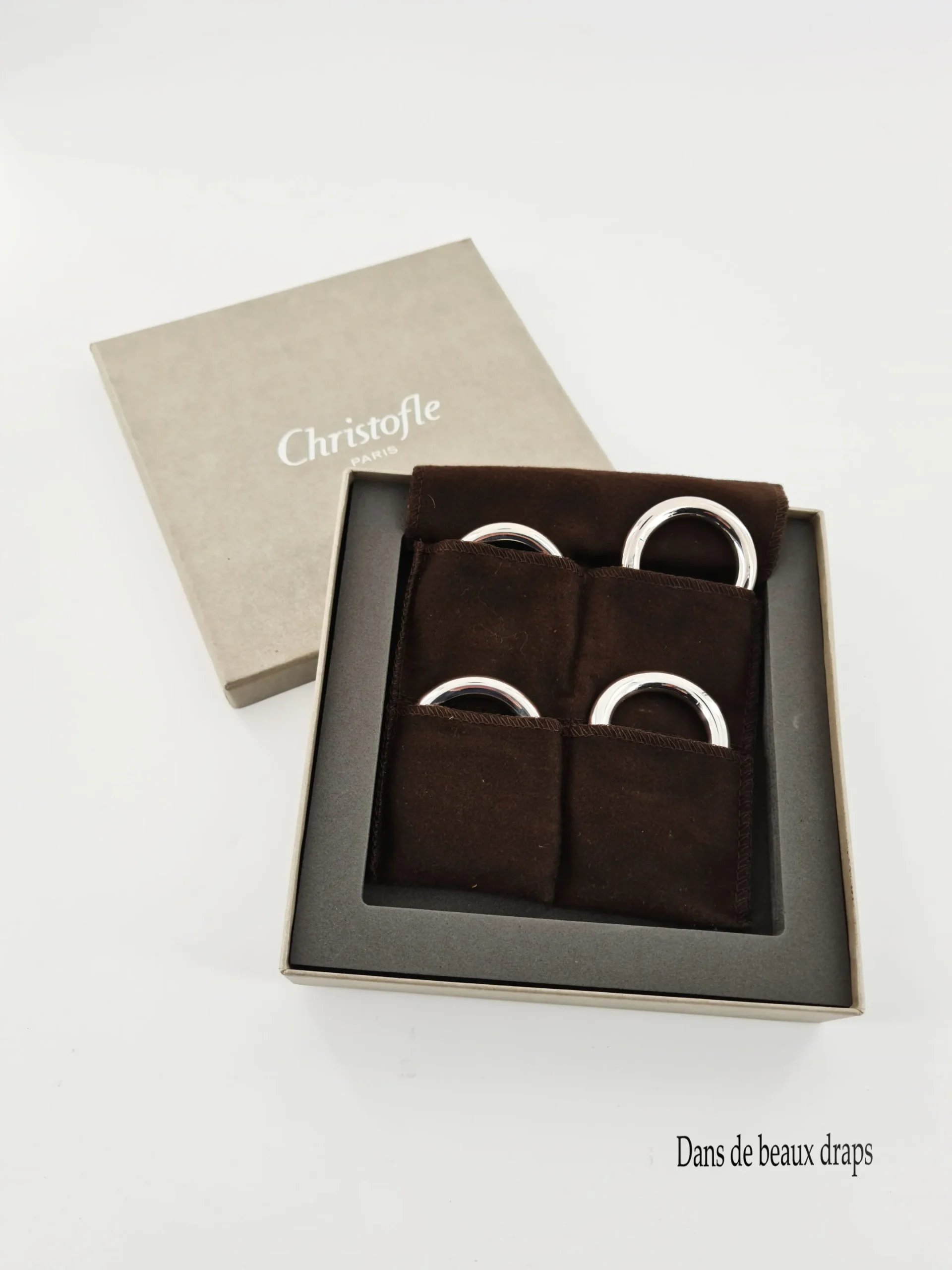 Bel ensemble de 4 porte-couteaux en métal argenté, orfèvre Christofle, modèle Vertigo.
