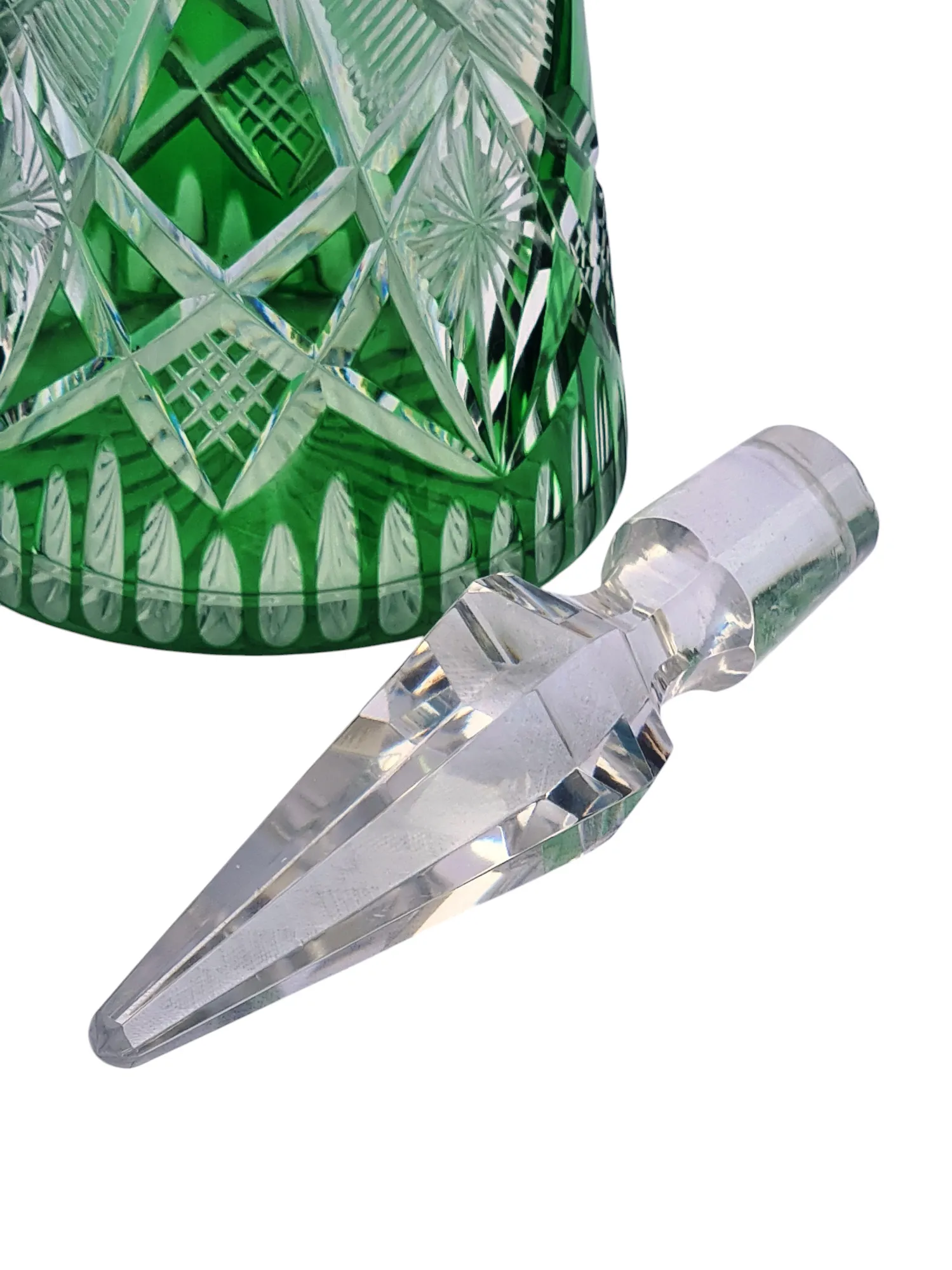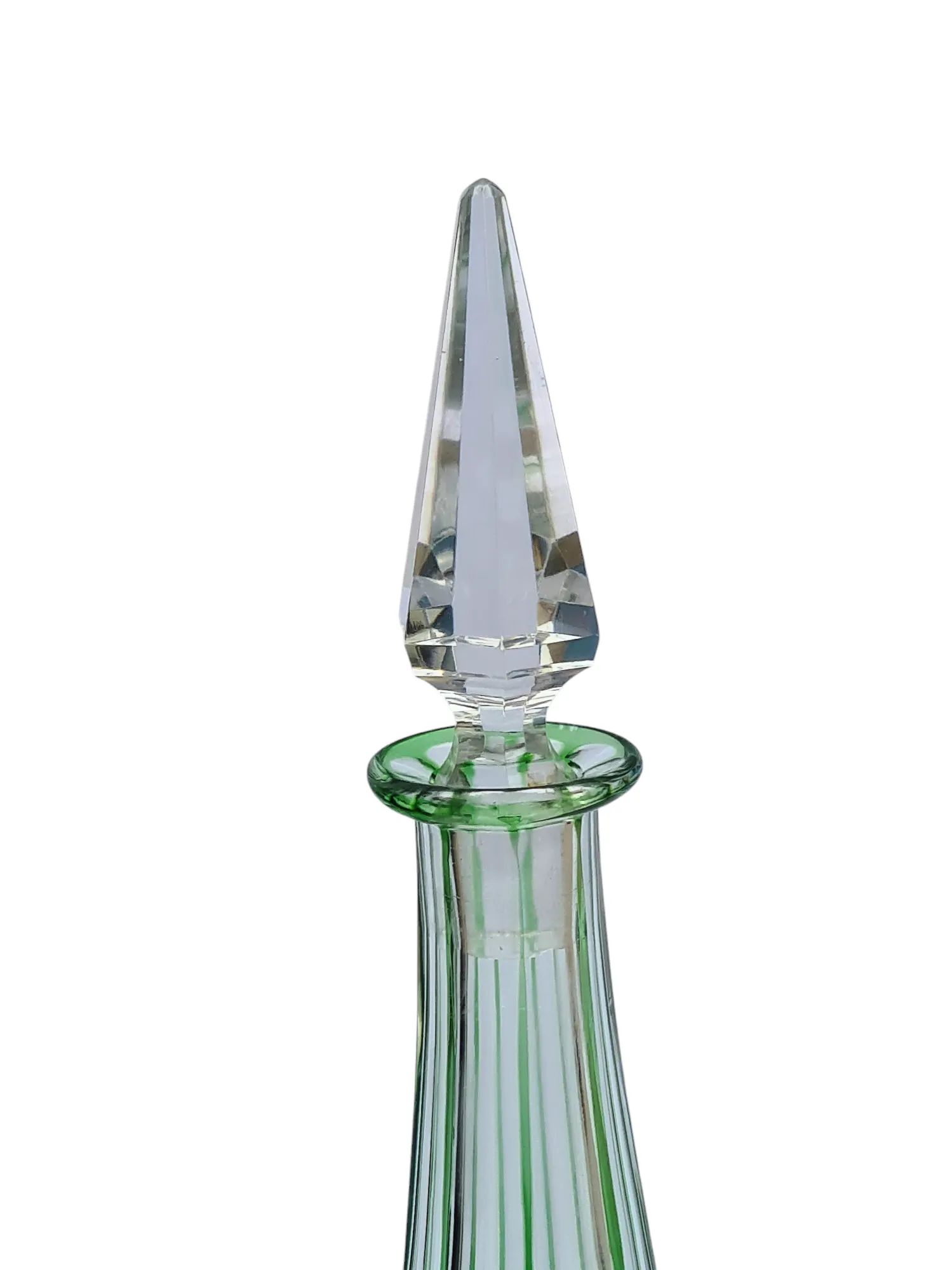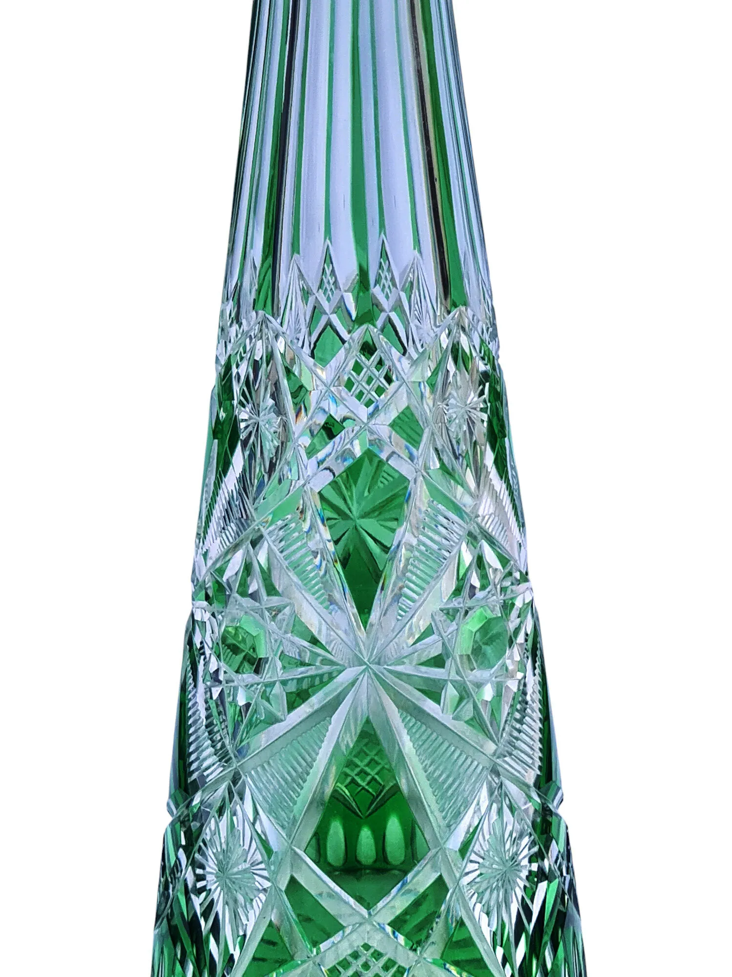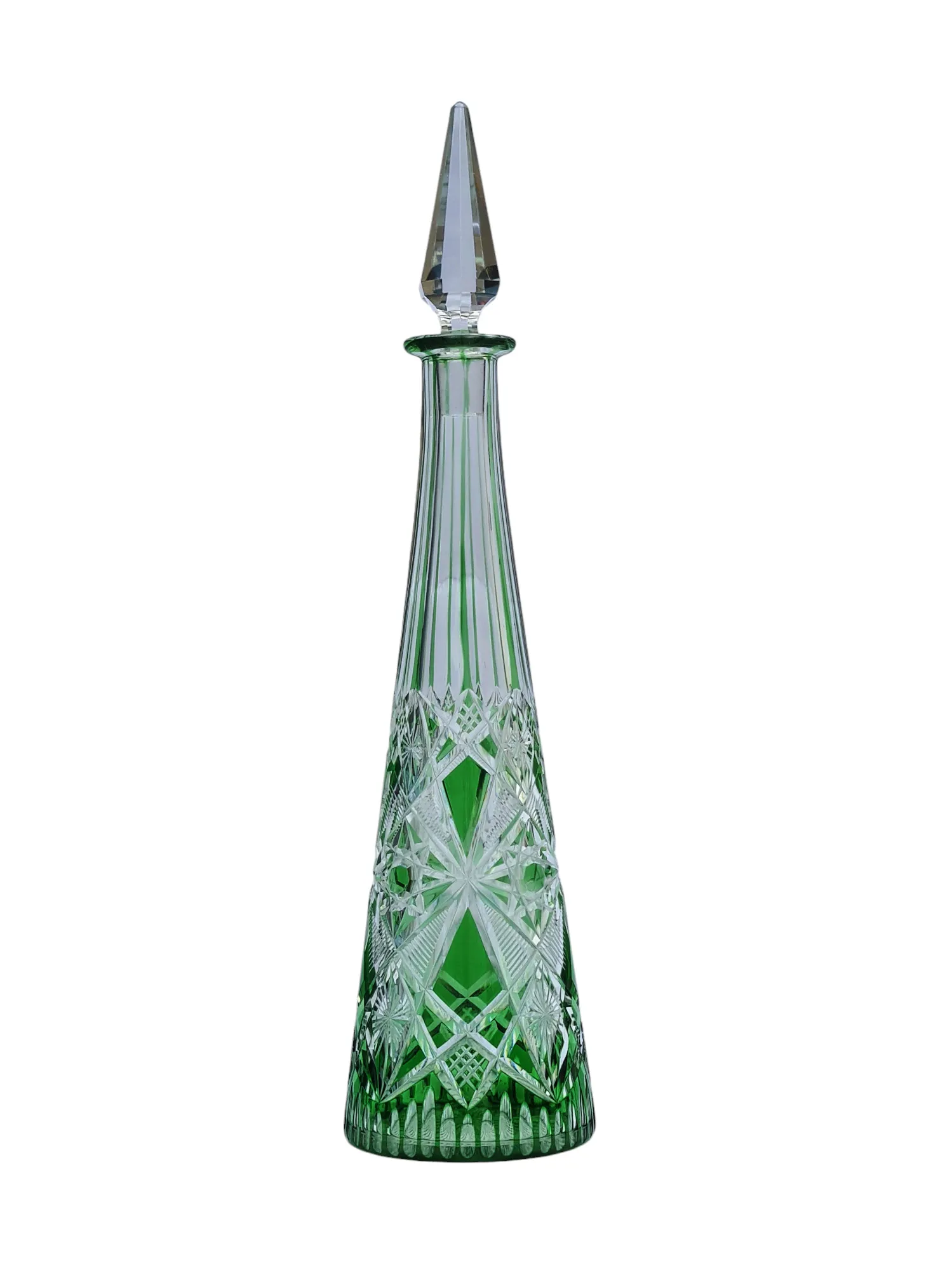 Belle carafe en cristal doublé taillé en cristal de Saint Louis de couleur verte.