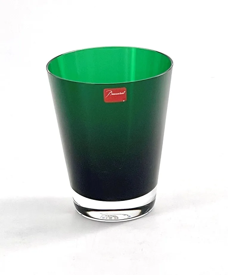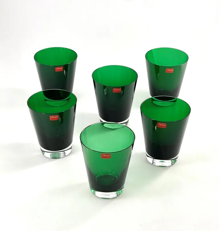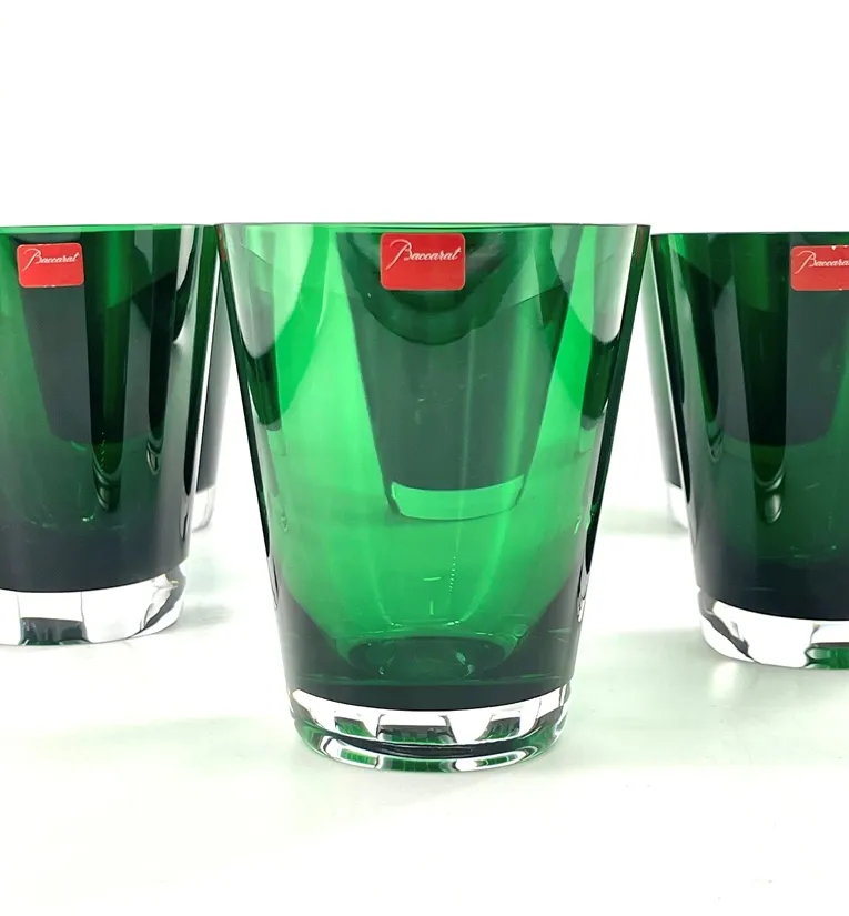 Belle suite de 6 gobelets à eau verts en cristal de Baccarat modèle Mosaïque.