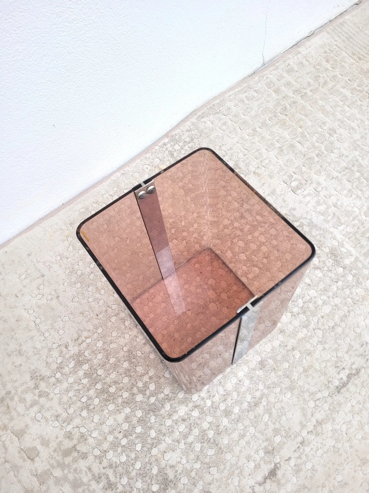 Le style est Space age, il est réalisé en plexiglas fumé / ou lucite.