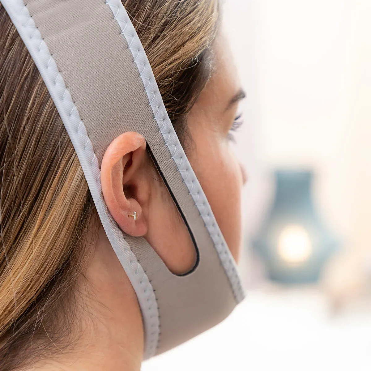 Fabriquée en néoprène respirant, elle est douce, flexible et confortable, s’adaptant à toutes les morphologies grâce à sa fermeture Velcro réglable. Son intérieur rembourré au niveau du menton assure un maintien agréable sans irritation. De plus, ses orifices pour les oreilles garantissent un ajustement stable sans gêne pendant la nuit.