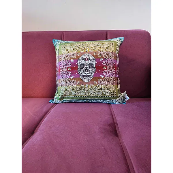 Coussin Tête de Mort Teardrops fait main