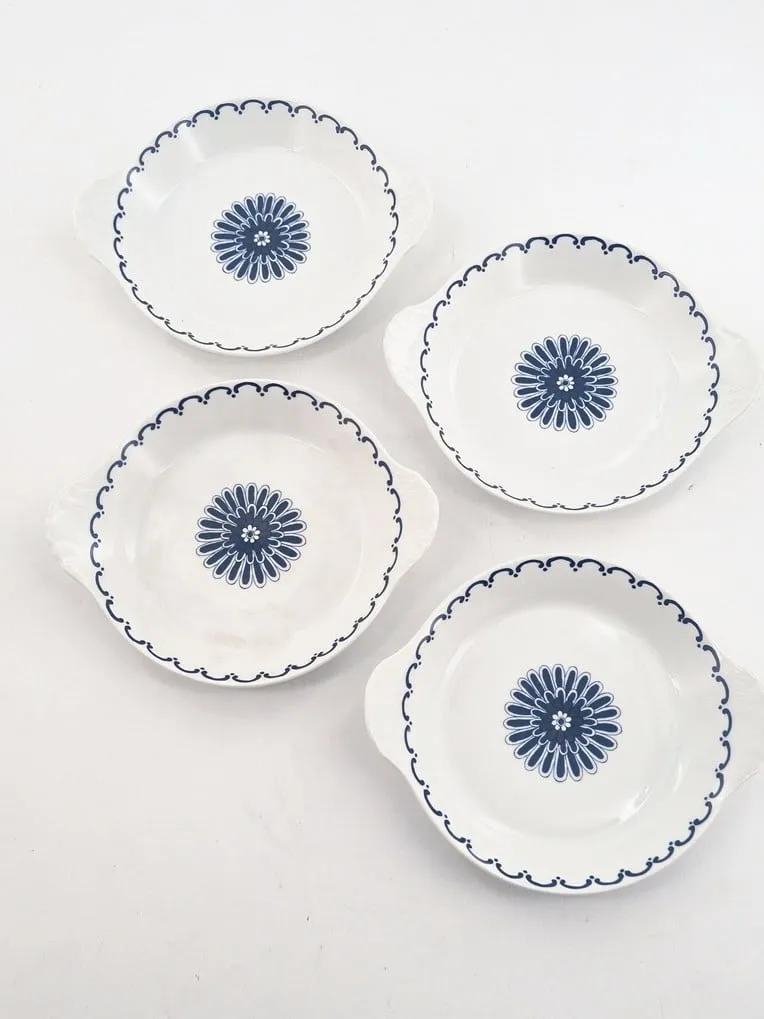 Réalisé d’après un document ancien , décor floral de couleur bleu indigo sur une base blanche.