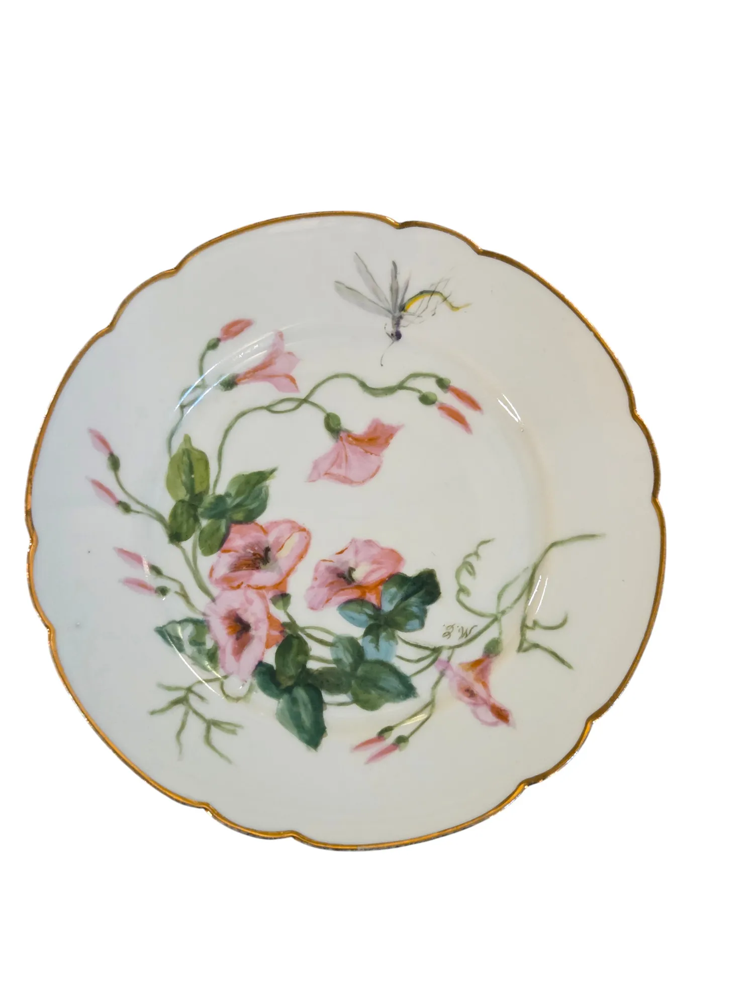 A signaler: un petit choc sur l’aile d’une assiette ( voir photo), quelques usures à la dorure qui n’altèrent en rien le charme de ses assiettes …