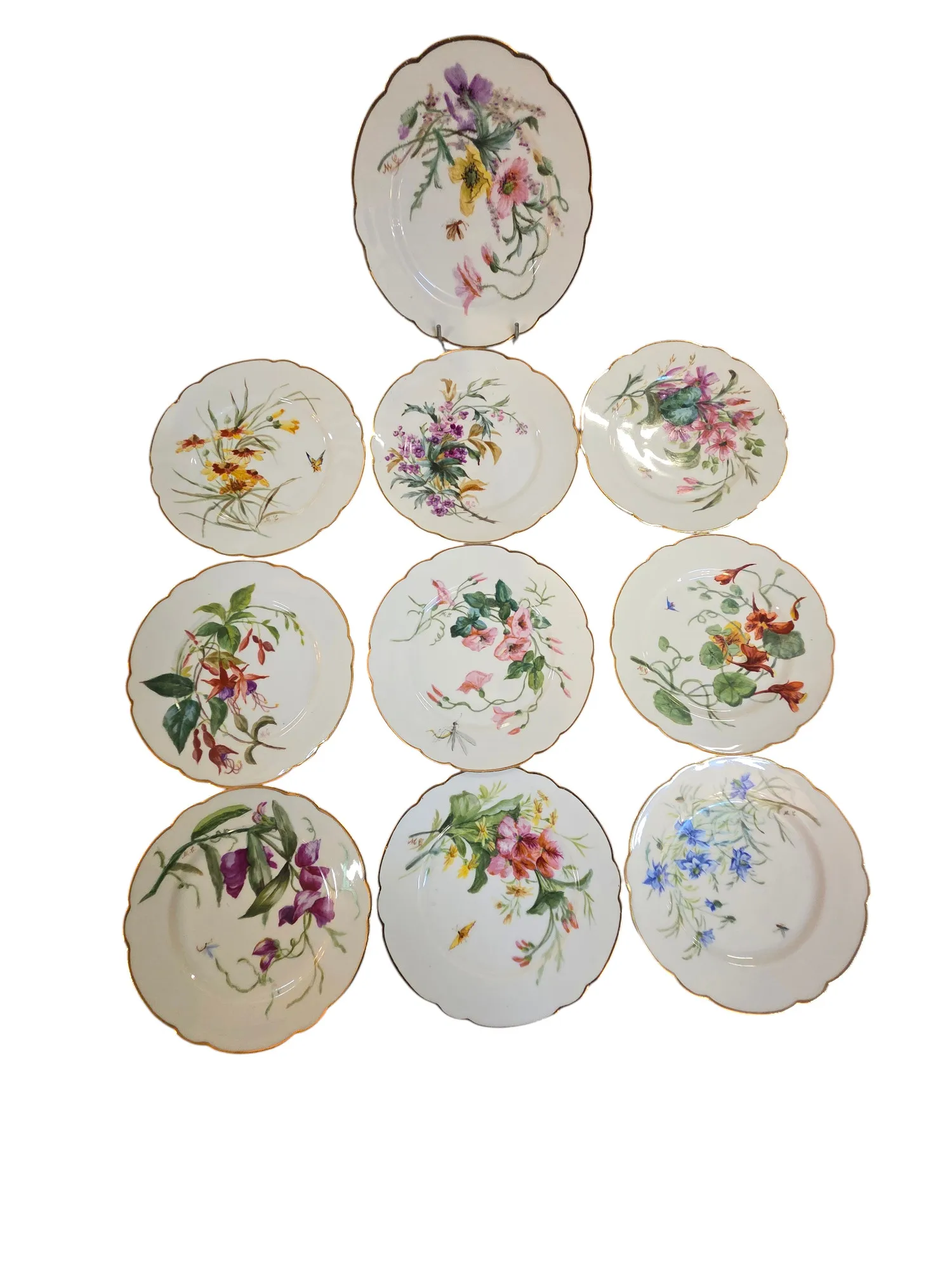 Ensemble de 10 assiettes à dessert en porcelaine de Paris, XIXème.