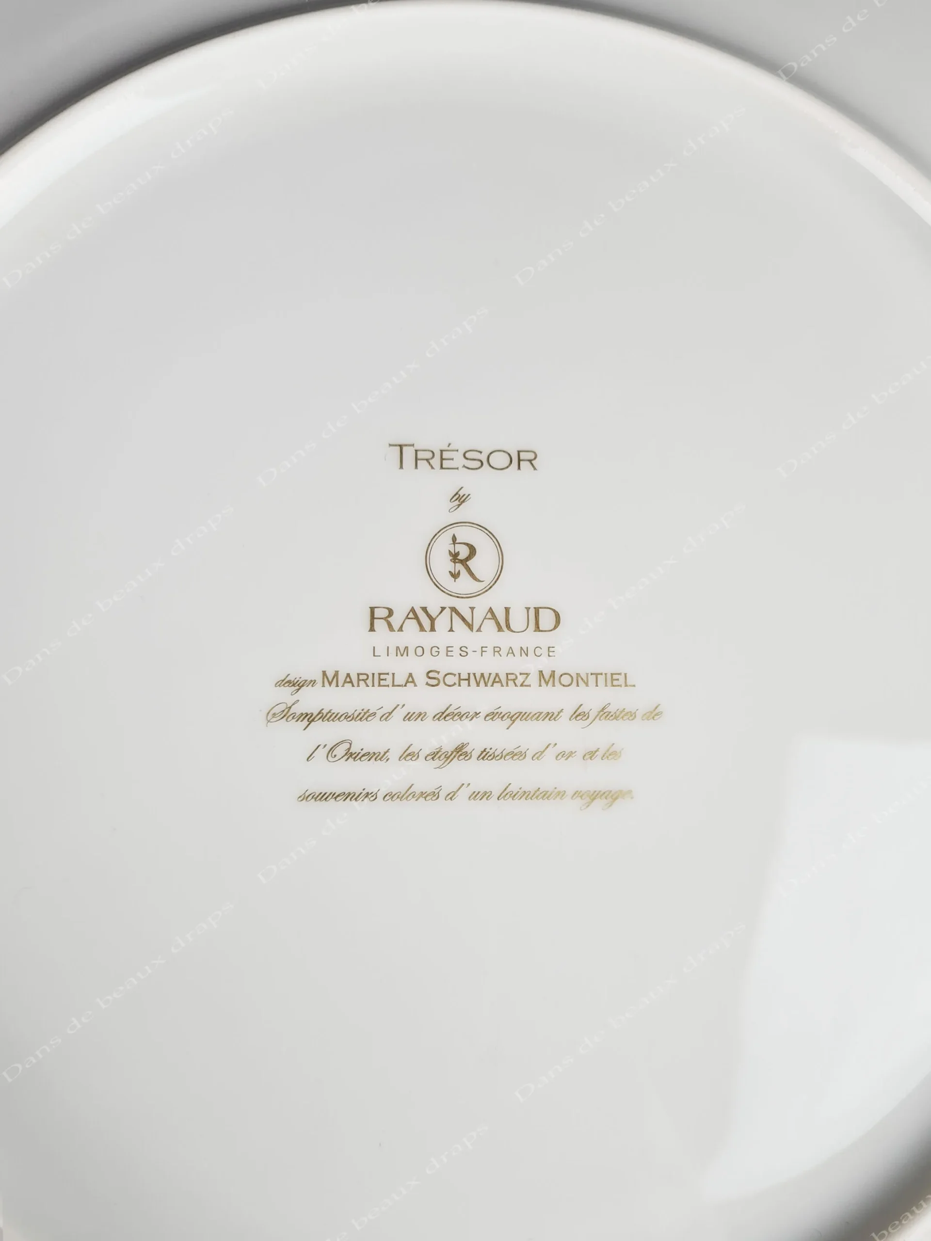 Ensemble de 6 assiettes de présentation en porcelaine de Limoges,Raynaud modèle Trésor ,couleur or et bronze.