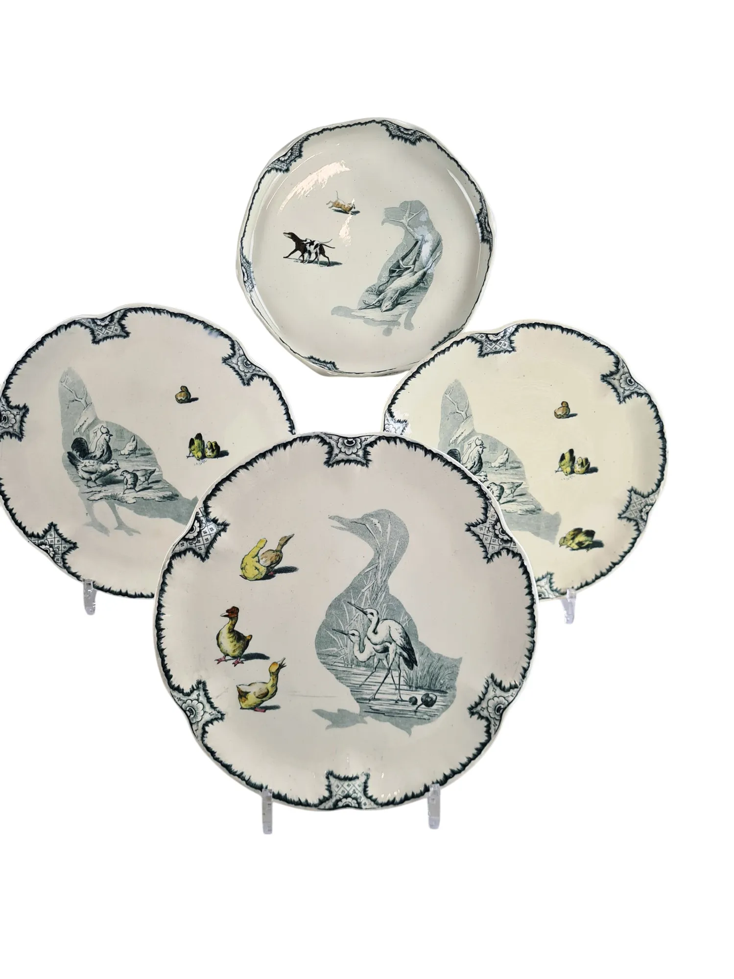 Exceptionnel service à dessert en faïence de Creil et Montereau, modèle Silhouettes, fin XIXème.