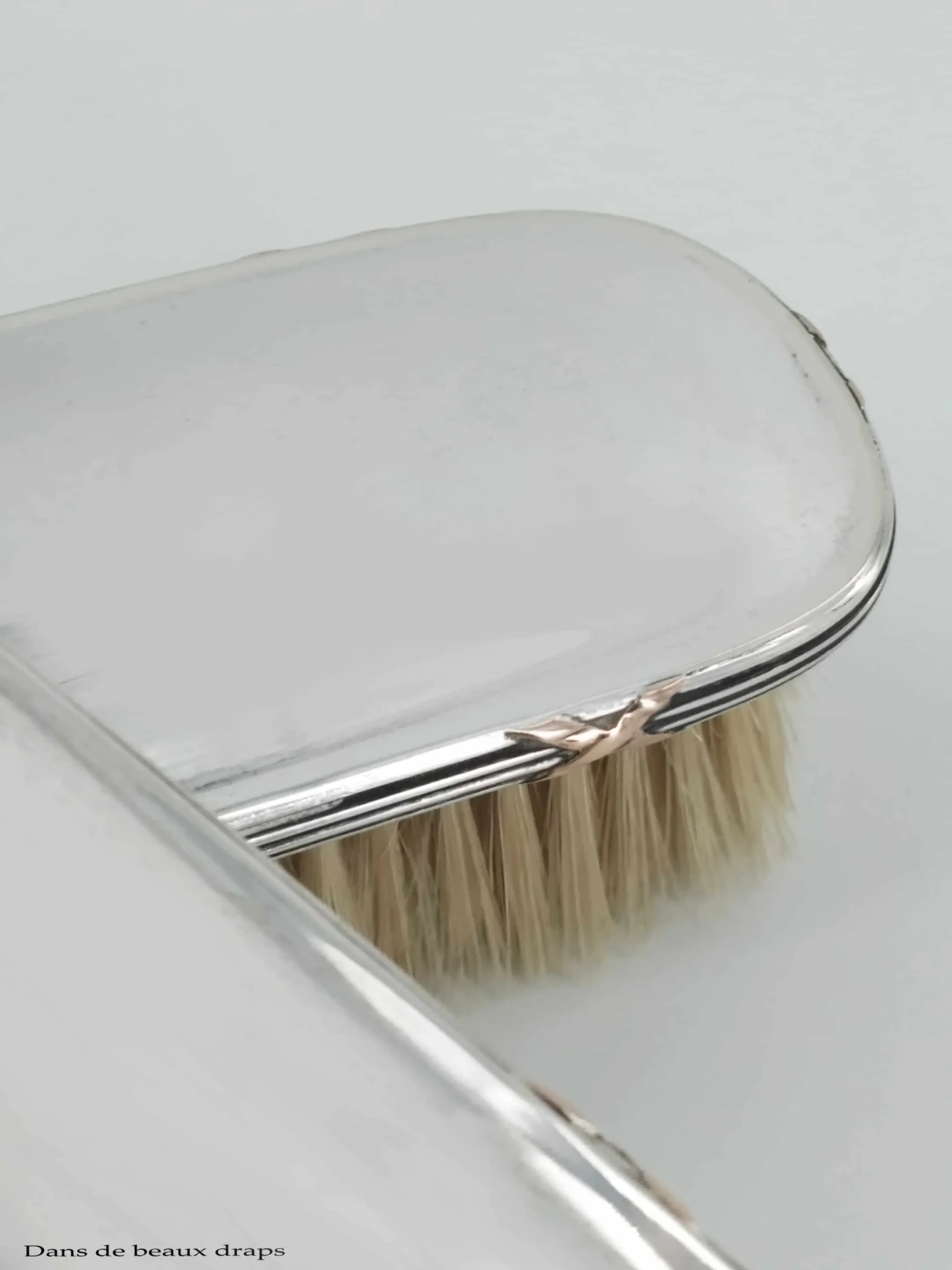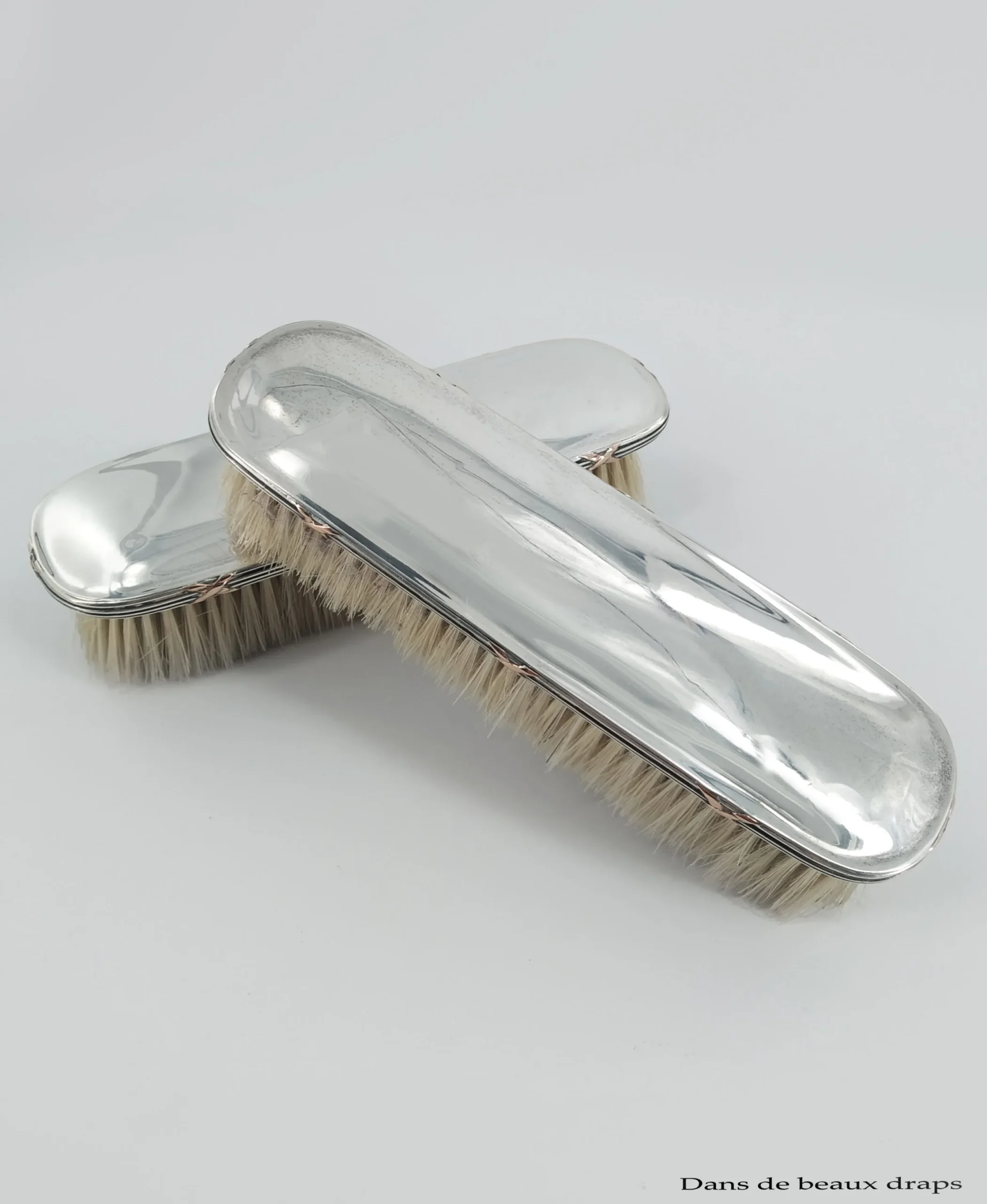 Décor de rubans croisés vermeillés sur les couvercles et les supports de brosse.