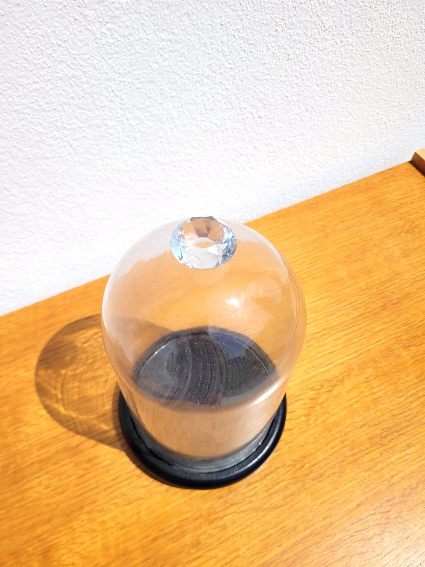 Cloche en verre façon globe de marié avec ce joli bouton diamant