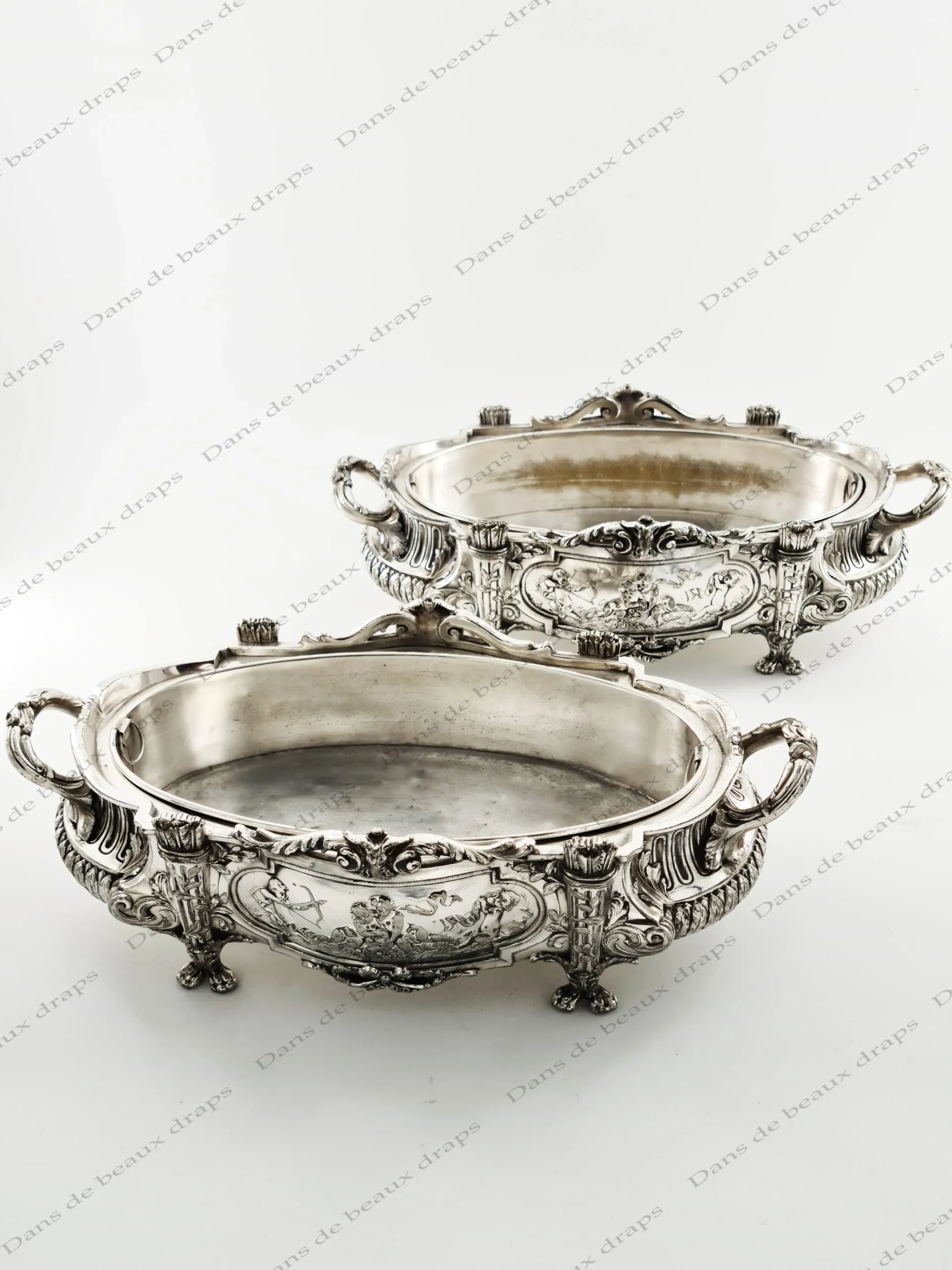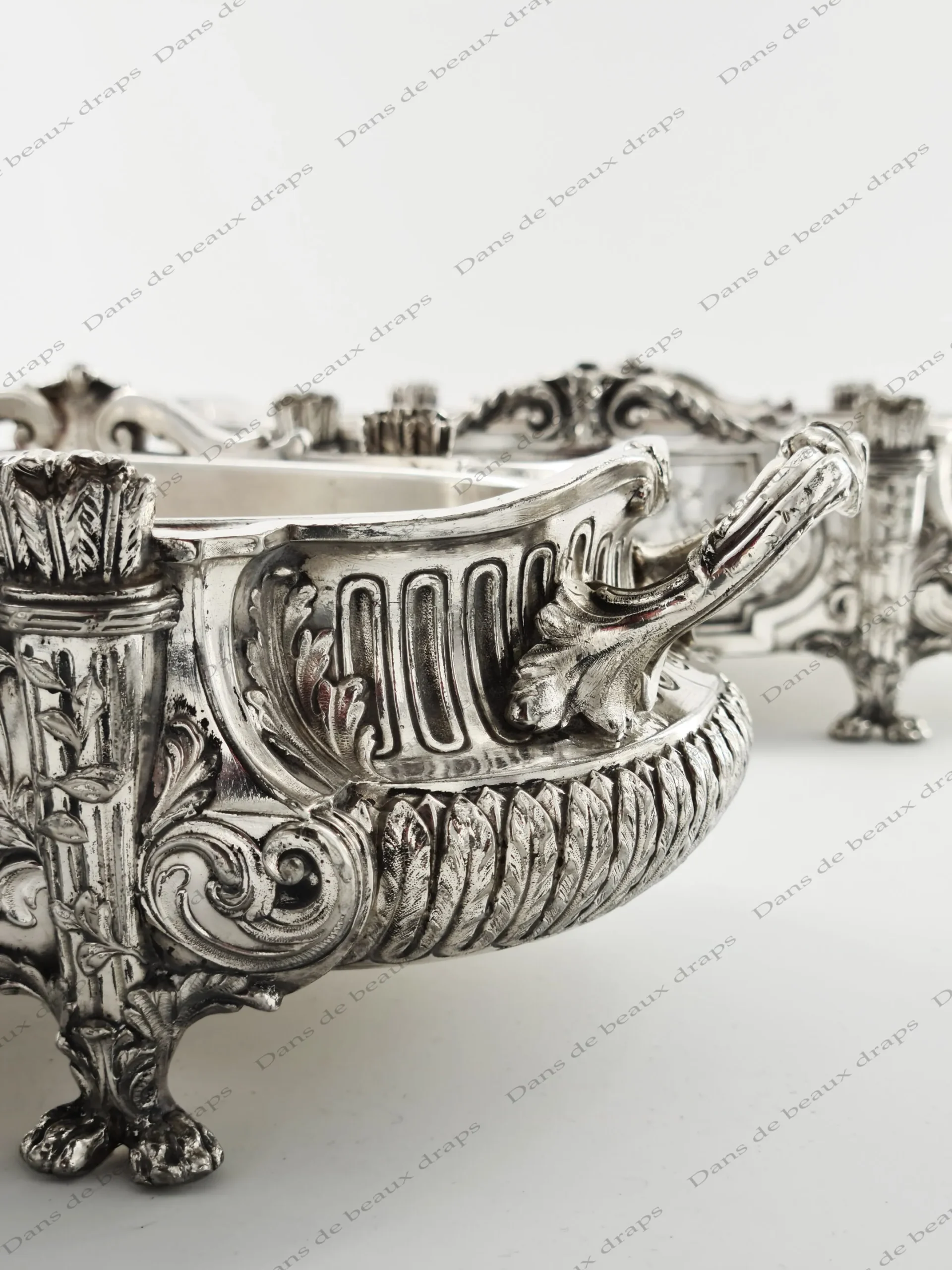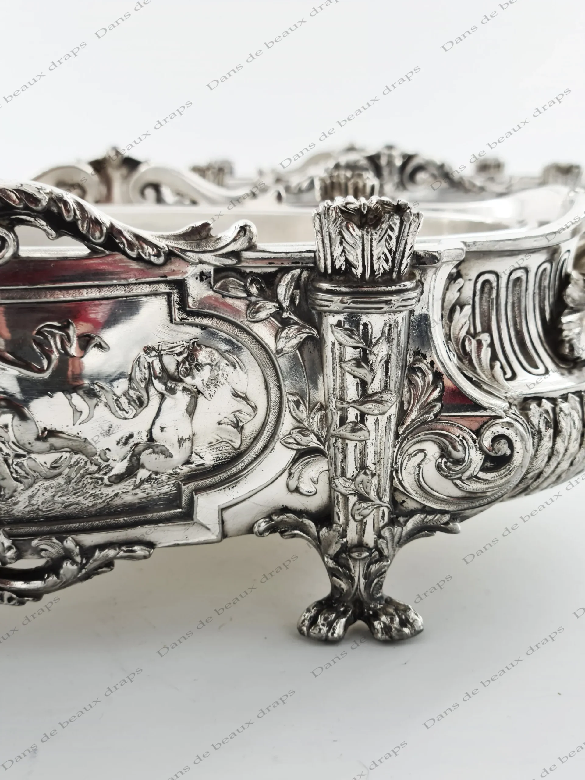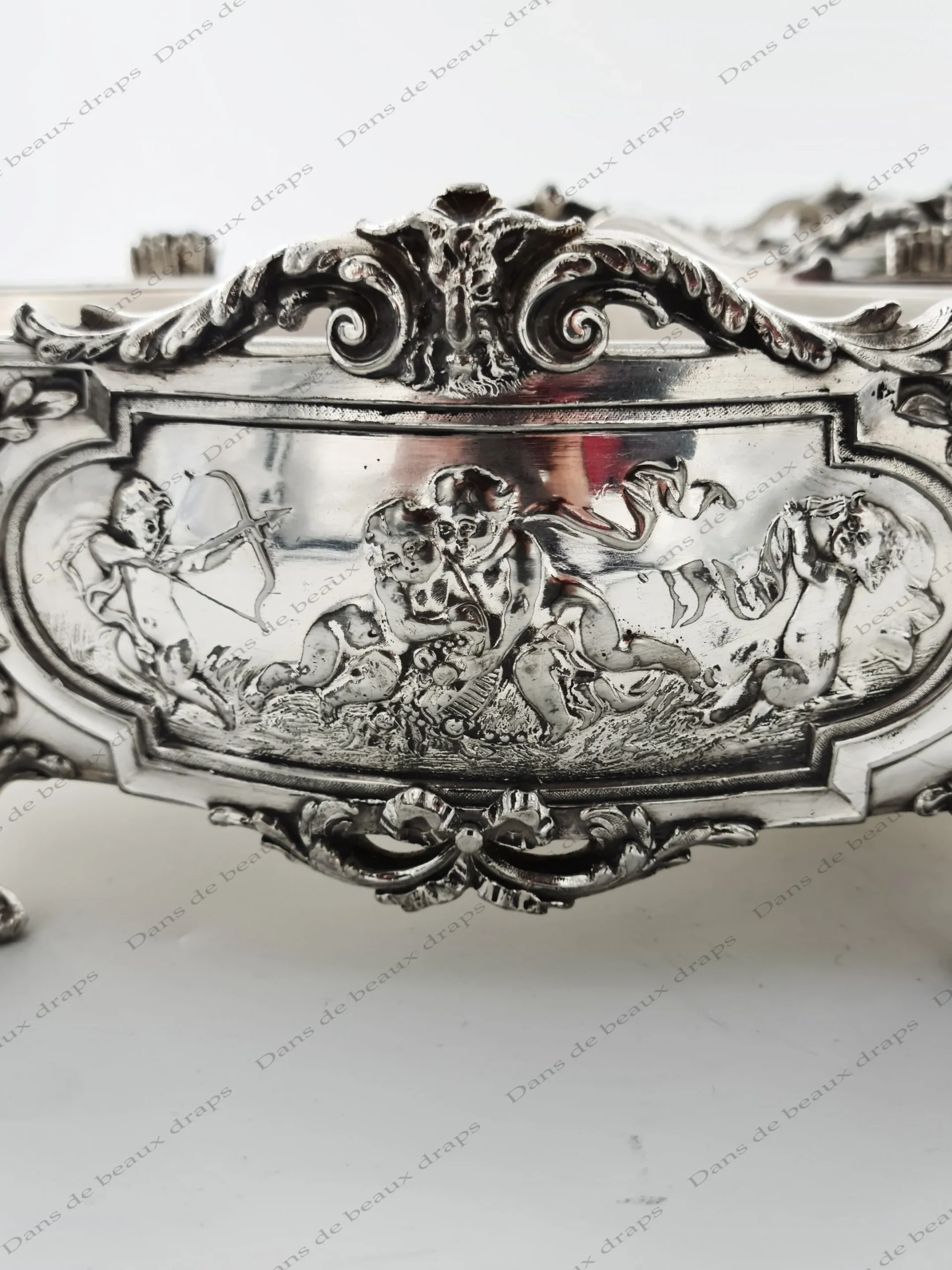Jardinière en bronze argenté à décor d’angelots, orfèvre Victor Saglier.