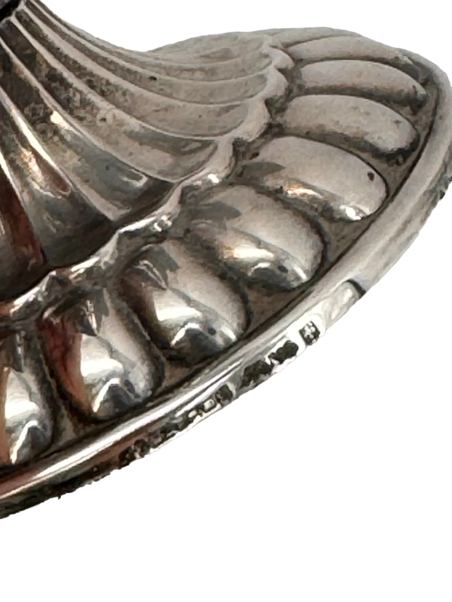 Base ronde à décor de godron, prise en forme de poisson.