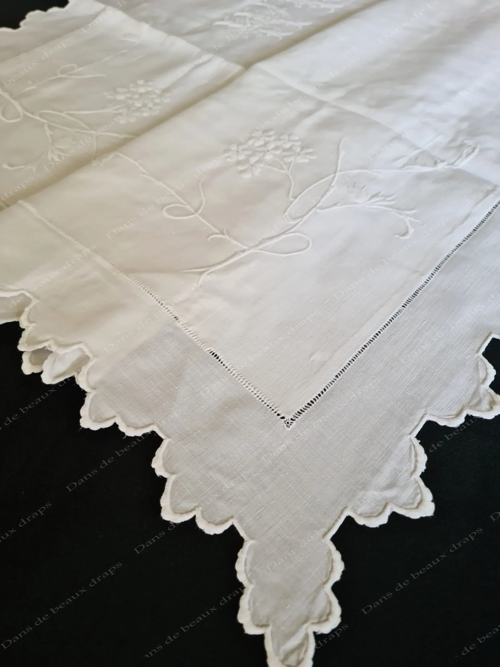 Superbe volant festonné sur les 4 cotés et petit jour échelle sur le tour.