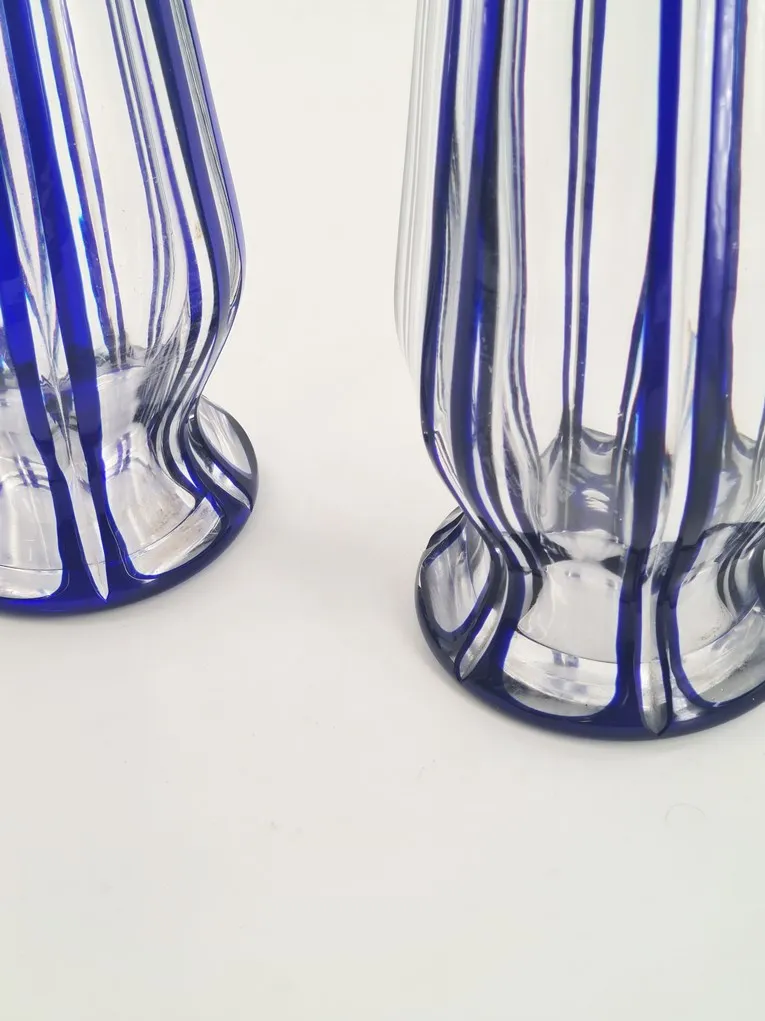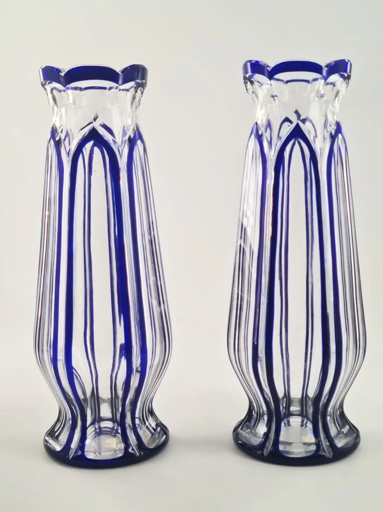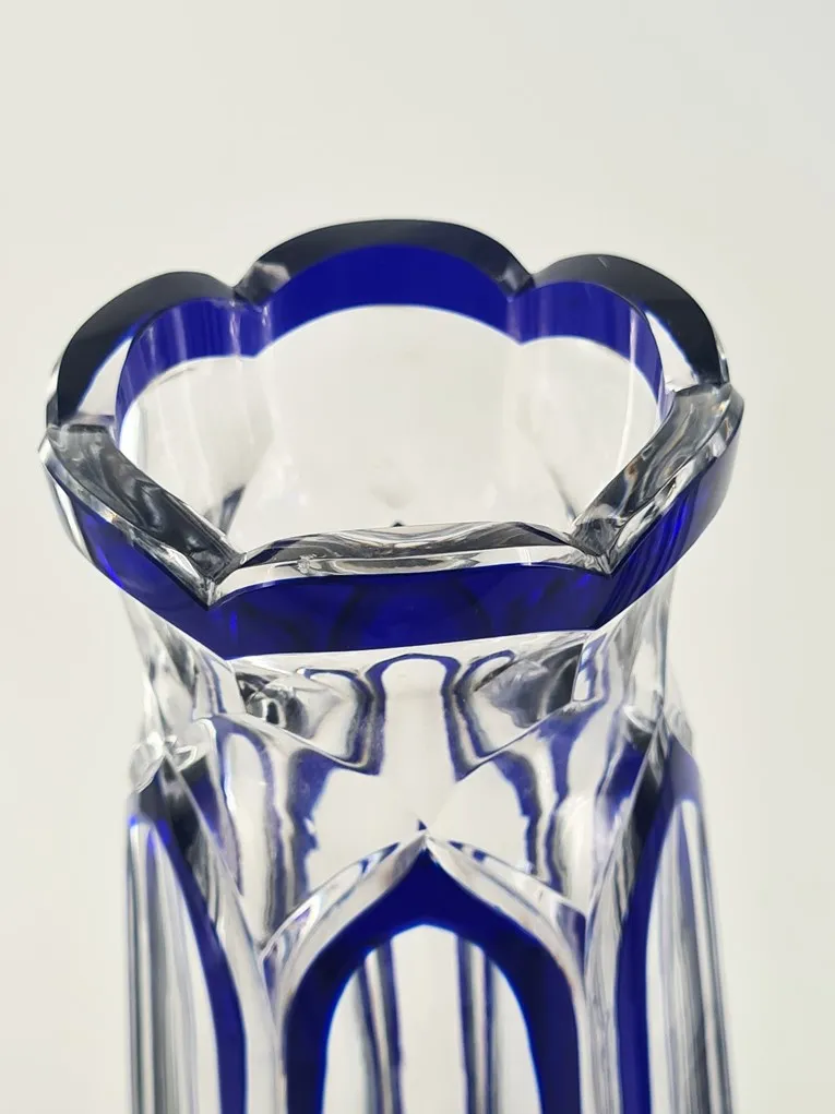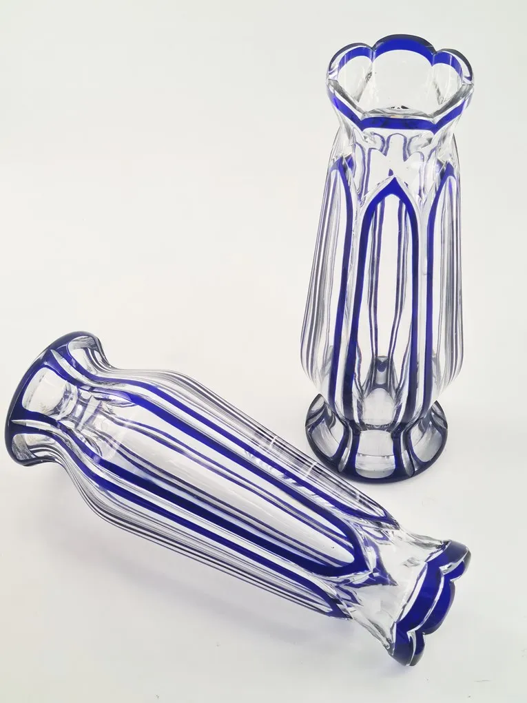 Magnifique paire de vases en cristal de Saint Louis doublés bleus