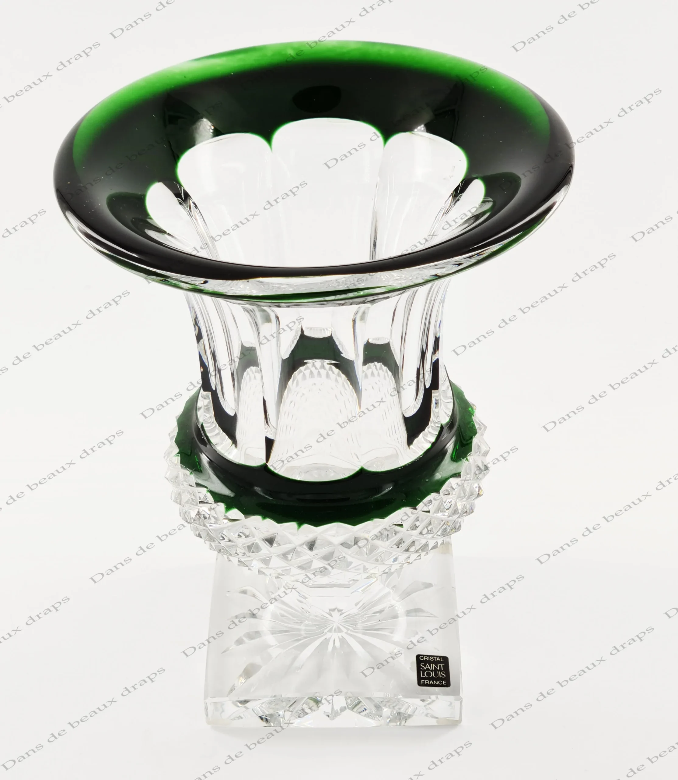 Magnifique vase en cristal taillé doublé vert, cristallerie de Saint Louis, modèle Versailles.