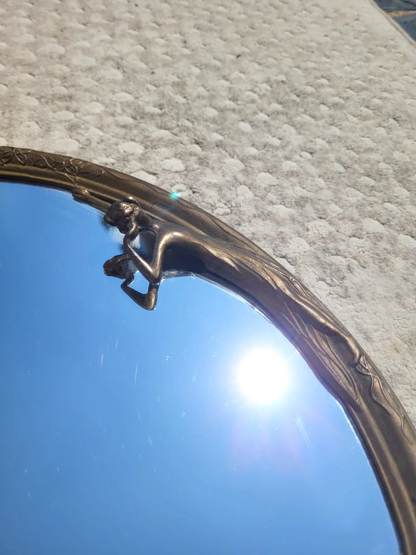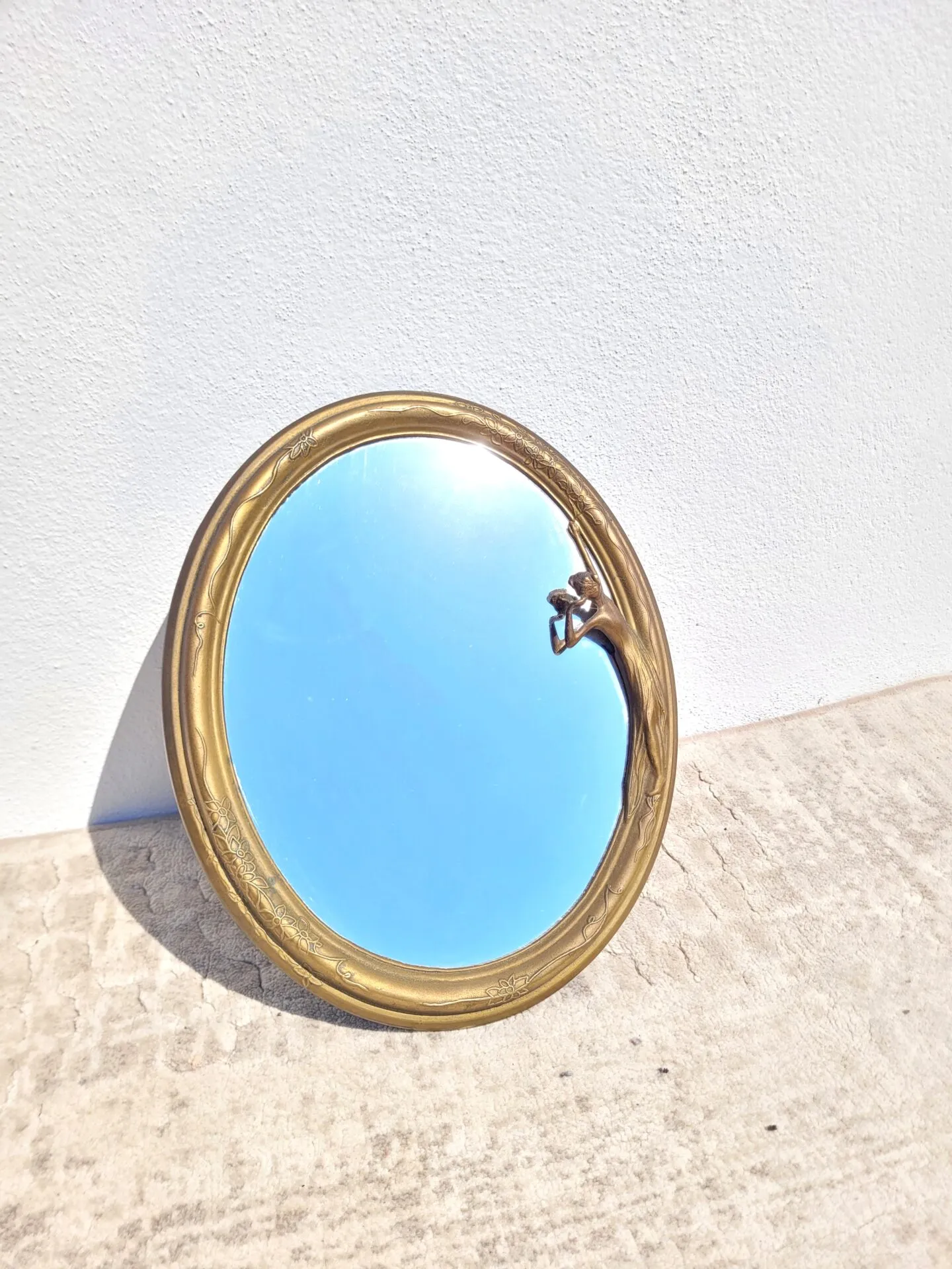 Le cadre est en métal doré rappelant le laiton, le bronze, glace en bon état