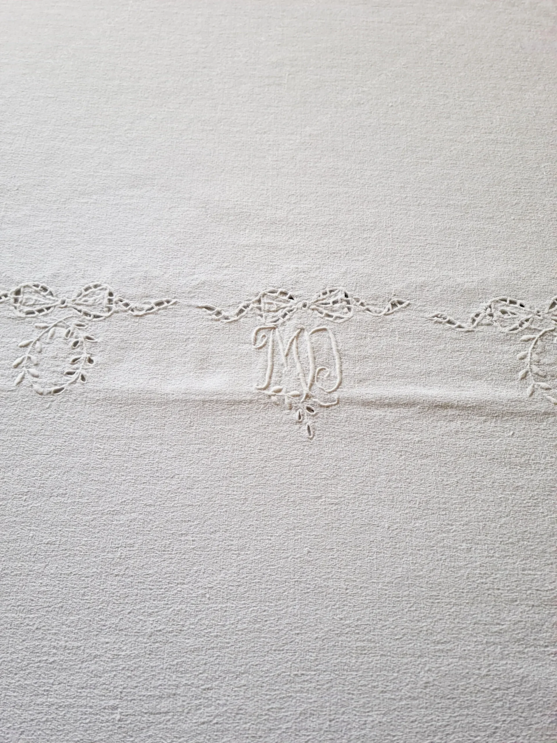 A l’intérieur,en miroir,2 monogrammes MD brodés au point de bourdon (6 cm par 6 cm).