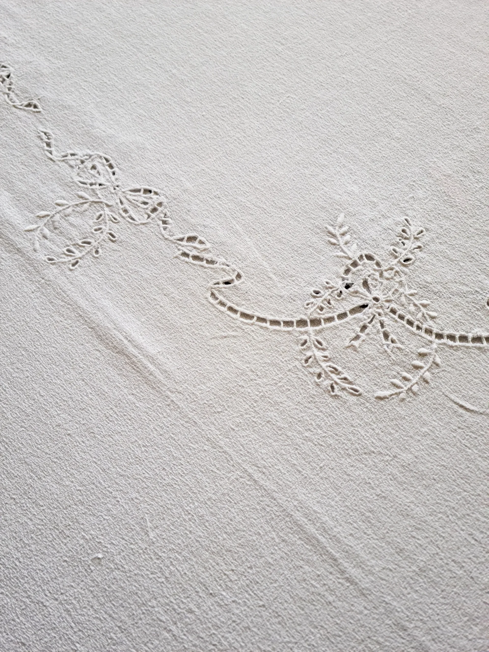 Nappe carrée en crêpe de lin à décor floral monogramme MD.