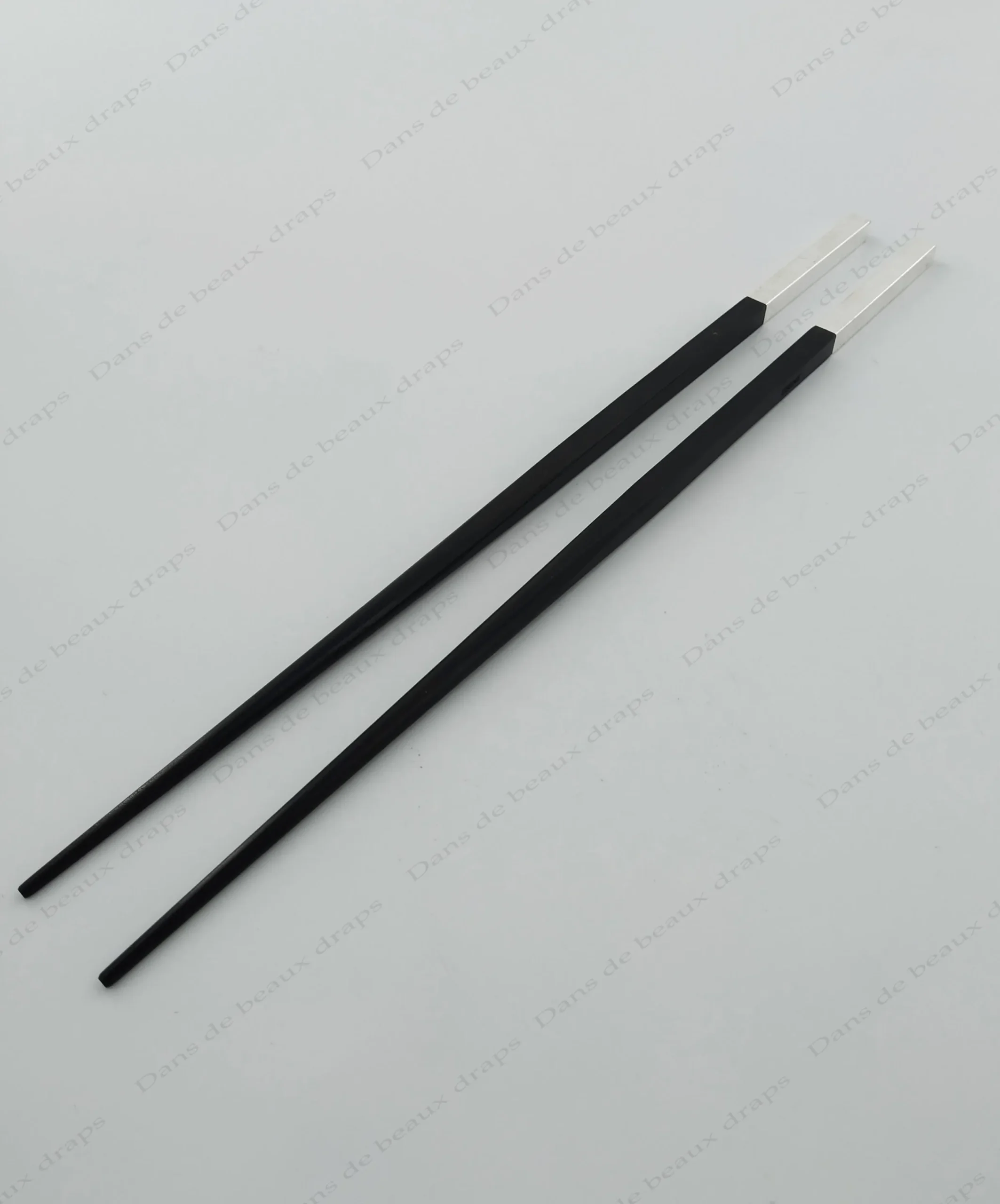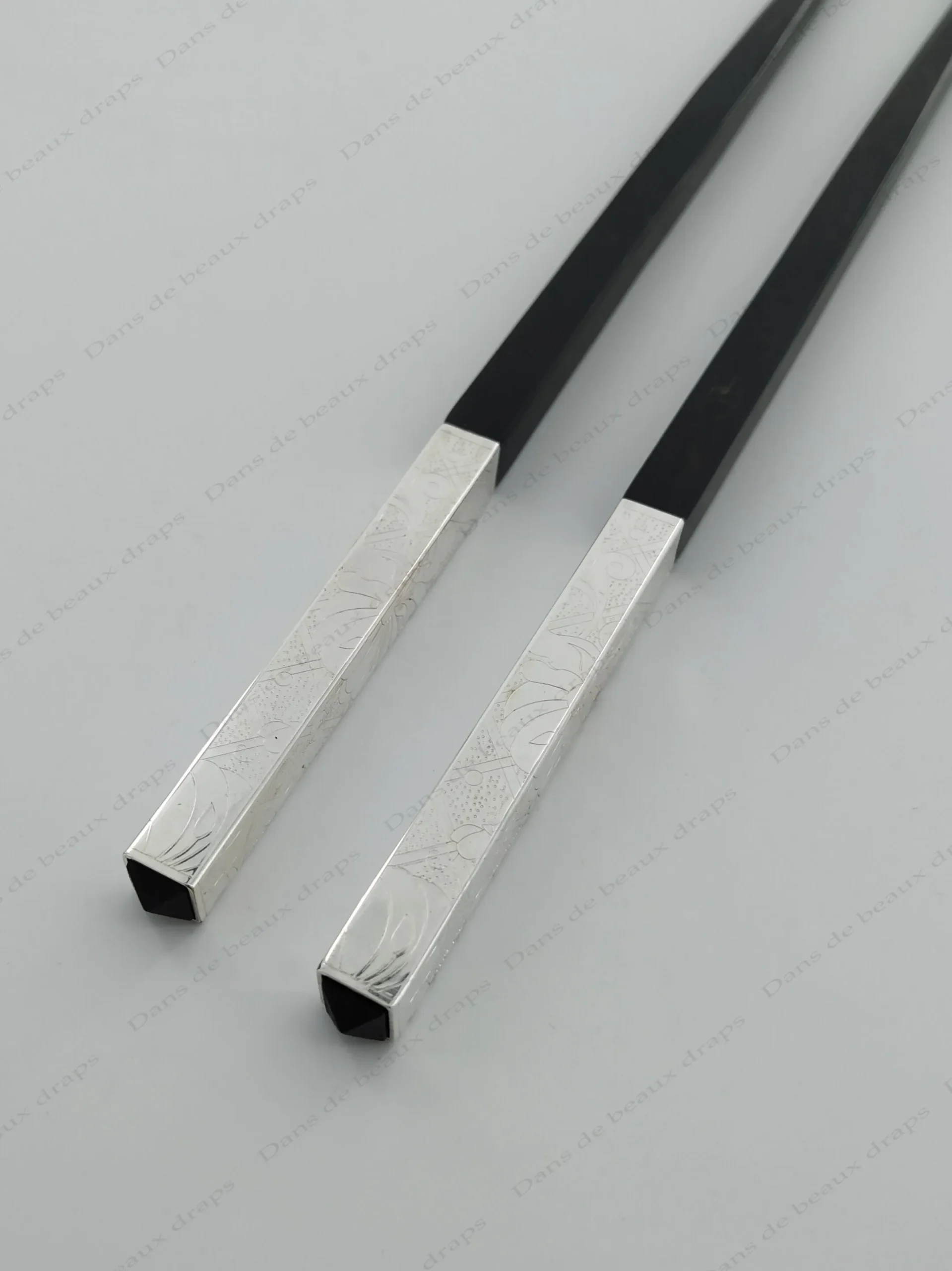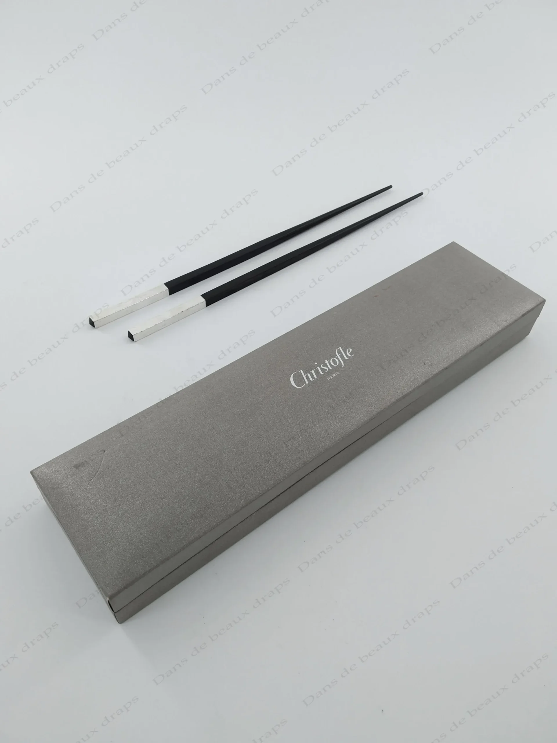 Paire de baguettes japonaises en bois et métal argenté, orfèvre Christofle.