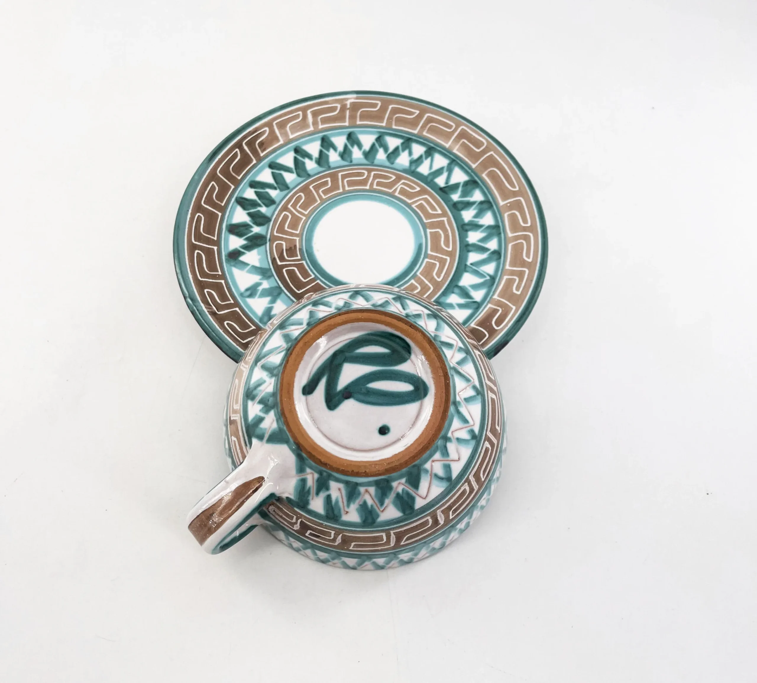 Paire-tasse à déjeuner en céramique émaillée , Robert Picault, Vallauris.