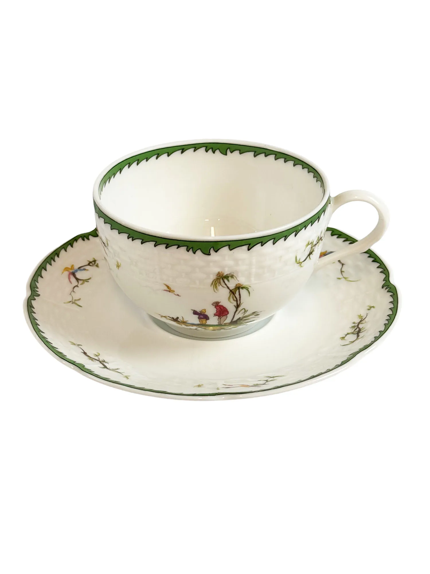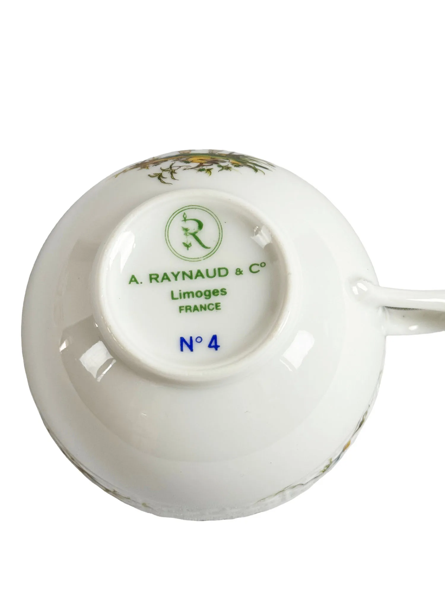 Paire-tasse à thé en porcelaine de Limoges, maison Raynaud, modèle Si Kiang numéro 4.