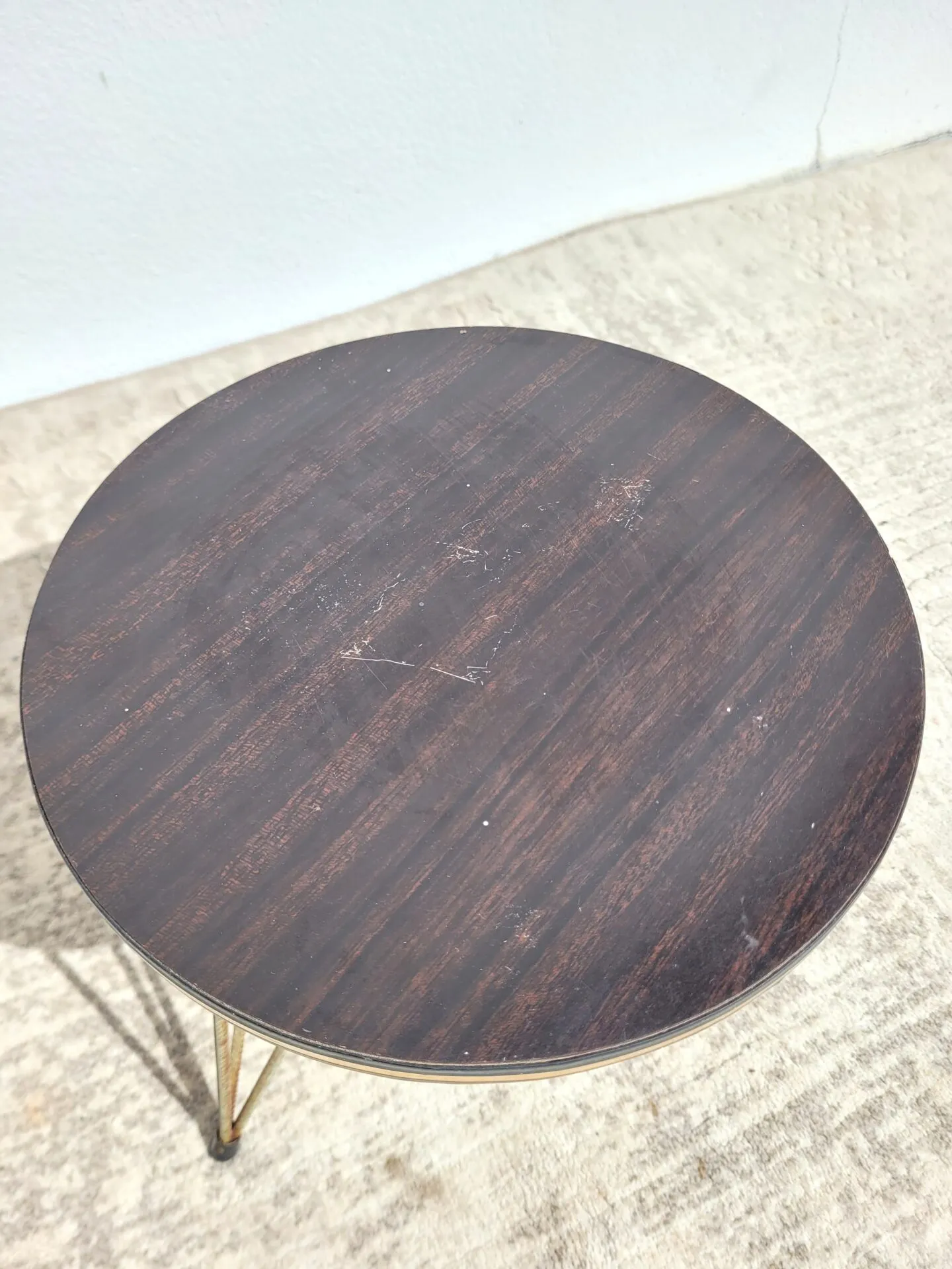 Plateau rond en formica (micro rayures)