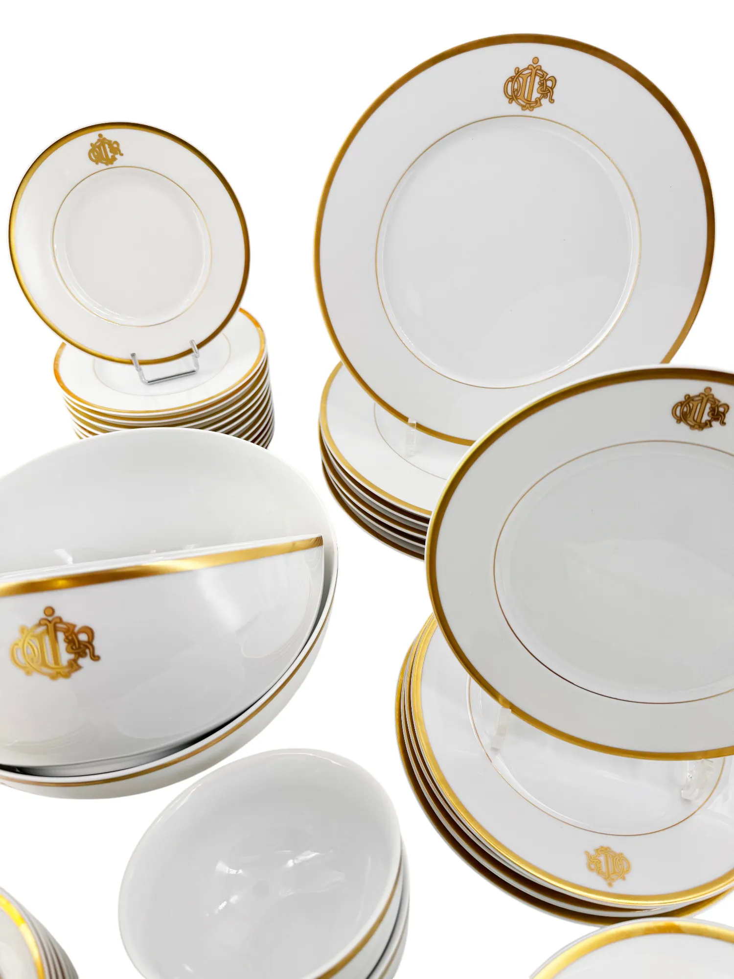 Rare partie de service de table en porcelaine de Limoges, maison Christian Dior, 40 pièces.