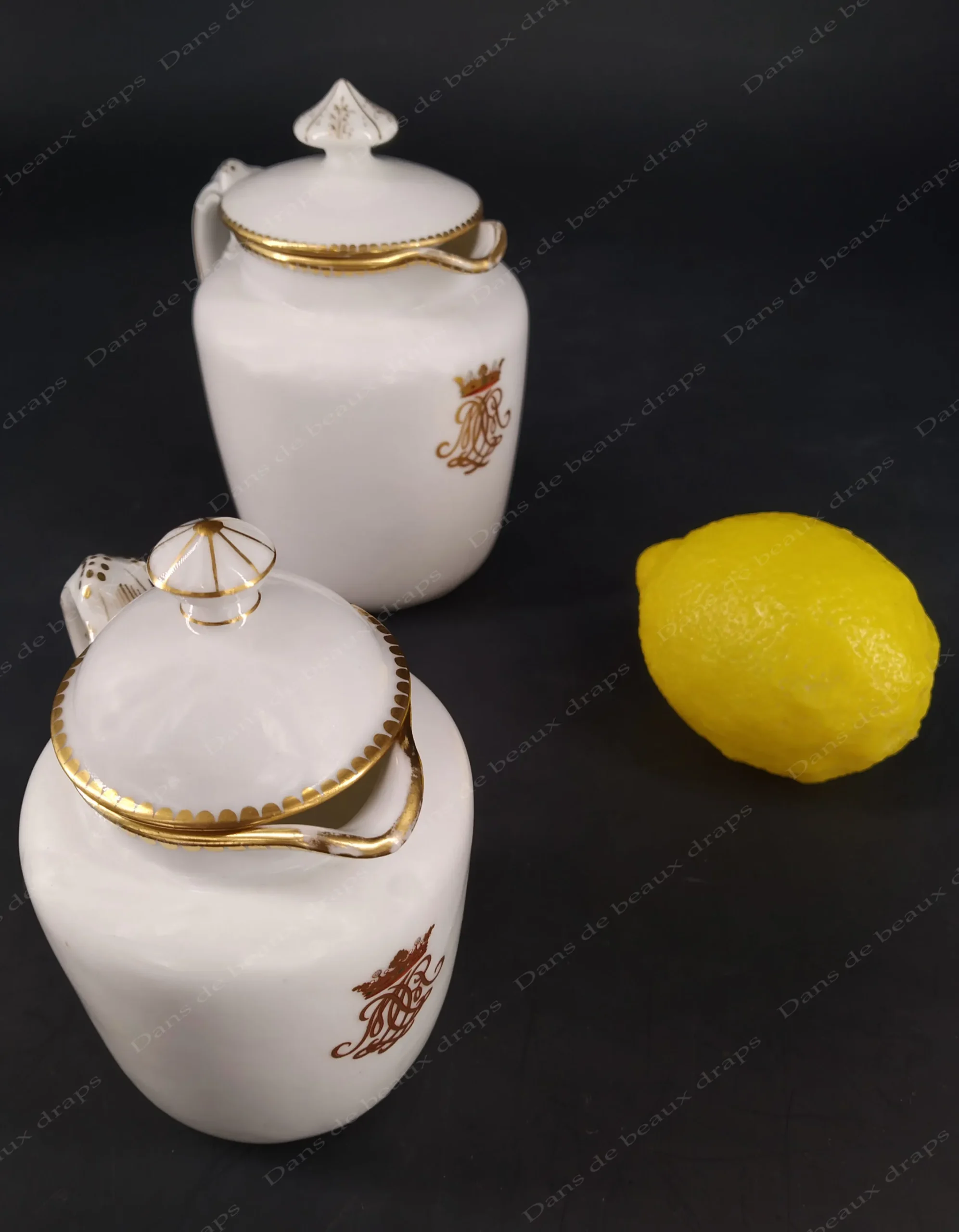 Rare pot à lait couvert en porcelaine de Limoges,monogramme sous couronne de marquis.