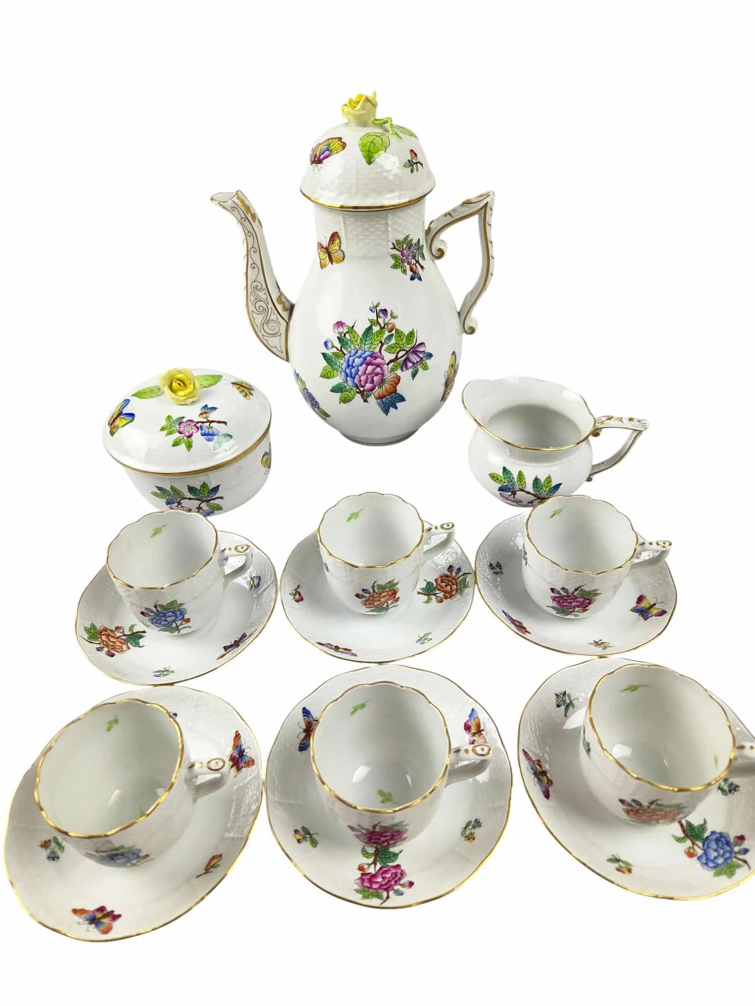 Service à café en porcelaine de Herend, modèle Queen Viktoria,15 pièces.